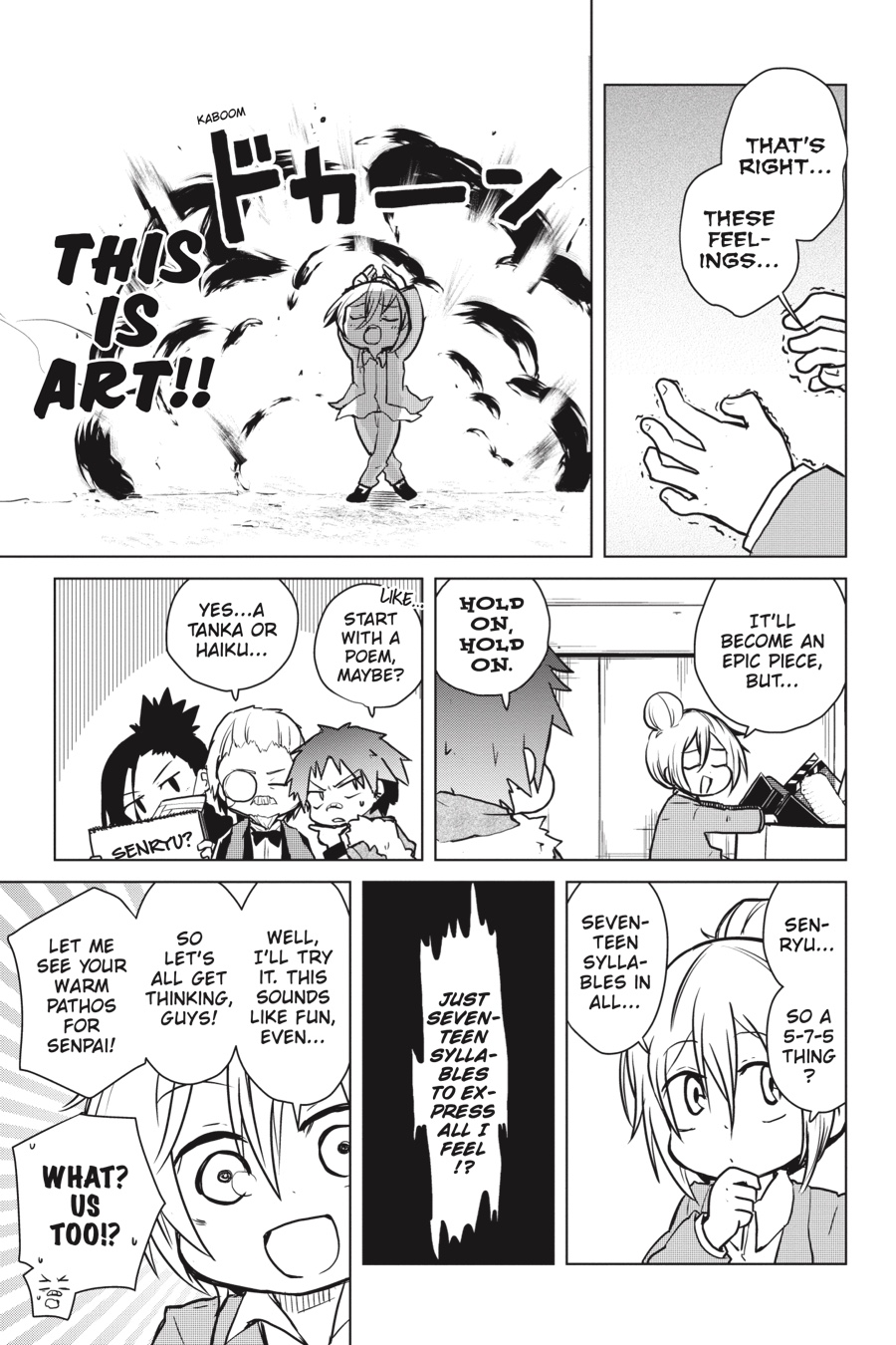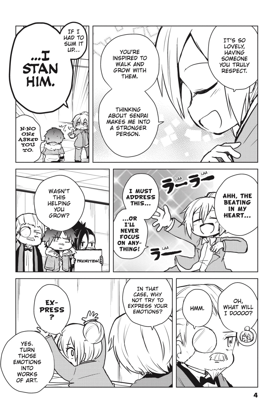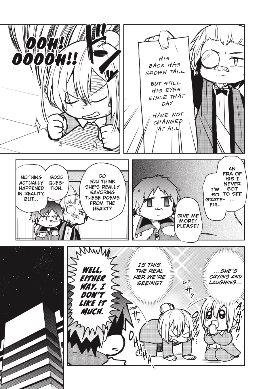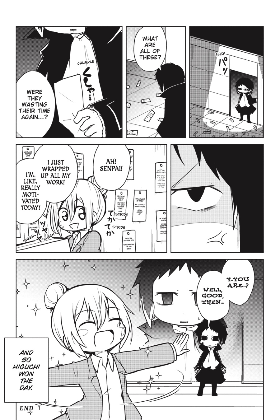 The colorful cast of Bungo Stray Dogs returns! Higuchi gets in touch with her creative side as she tries her hand at writing haiku, Chuuya elicits concern as he’s seen talking to inanimate objects, and Dazai has a totally serious conversation with his Dark Era buddies about what it truly means to apologize. Even the bad guys are getting into the gag manga groove as the Hunting Dogs, the Guild, and Dostoyevsky take the stage!