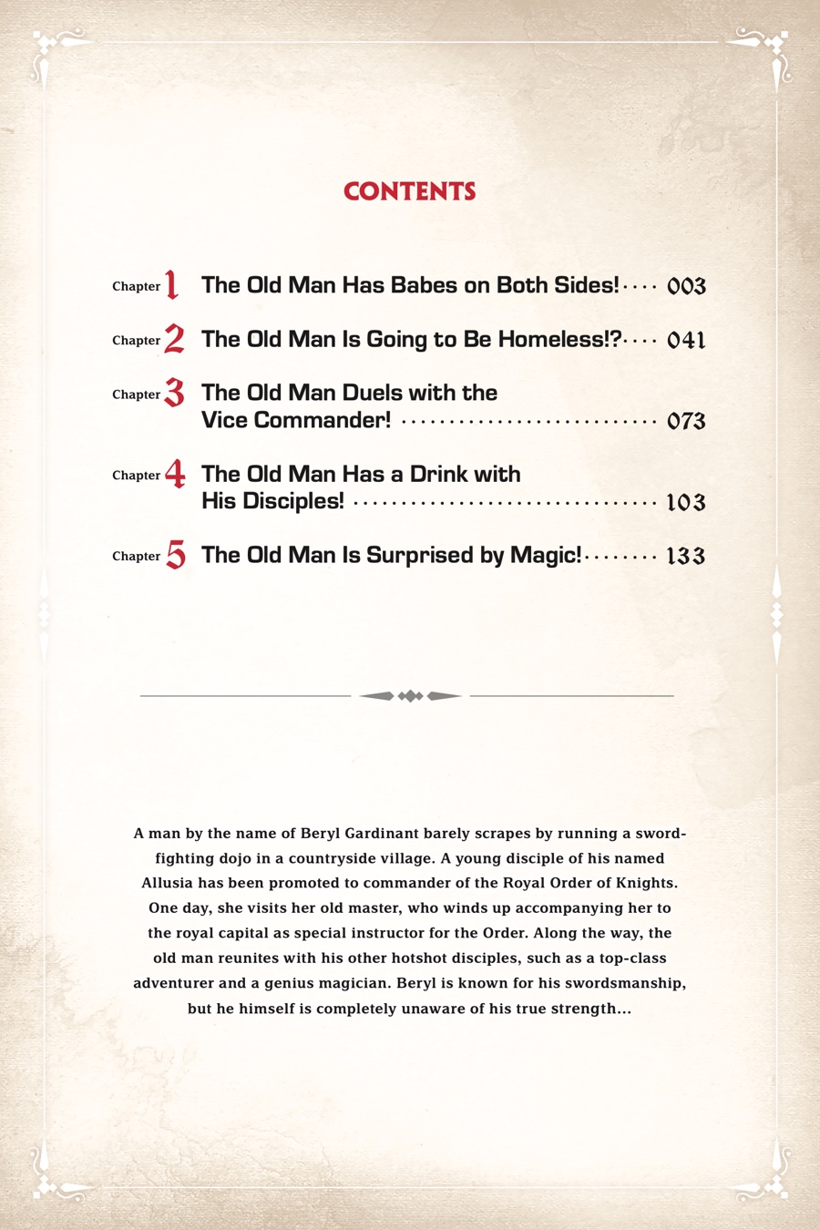 Middle-aged Beryl Gardinant has only ever accomplished one thing: running a humble sword-fighting dojo in the quiet countryside. But when he’s paid a visit by his former pupil, Allusia, he discovers that she has become an elite commander—and she’s hardly the only ex-student who’s a renowned warrior! Now forced by Allusia to become a special instructor to the strongest order of knights in the kingdom, can Beryl reach his full potential even though he’s an old man?