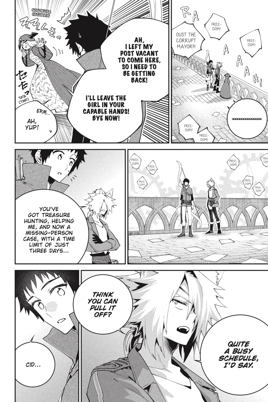 After Margai attempts to kill Cid and Mid, Shogo learns the man’s daughter has been taken to the Underground Coliseum, a twisted establishment where patrons enjoy watching unwilling victims suffer. Rumors say it’s hidden inside the Big Bridge, but with no clues as to its exact location, Shogo and Cid will need help to make any progress. And as they search for the girl, it becomes clear that the Coliseum is only the tip of the iceberg when it comes to shady dealings in the Gold Saucer…