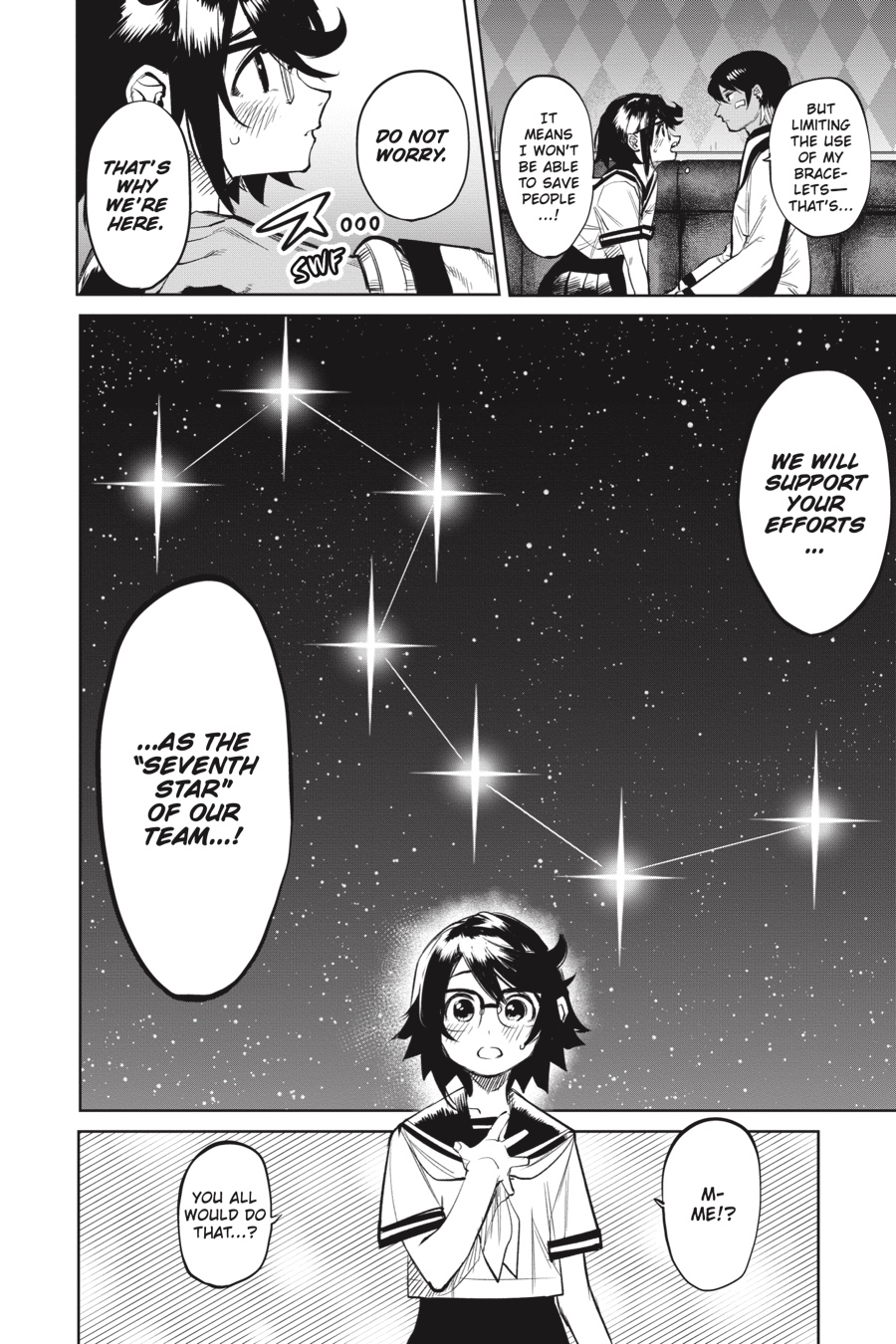 Nirvana, Hero of India, arrives on the scene along with his team, the Shining Six! And they have an urgent message for Shy—to limit the use of her heart-shift bracelets…?! With Shy currently in the crosshairs of Amarariruku, she’s forced to fade into the shadows and rely on the support of others. But how is she expected to turn a blind eye to the people in need…? And what exactly is Nirvana’s connection to Shy’s late sister?