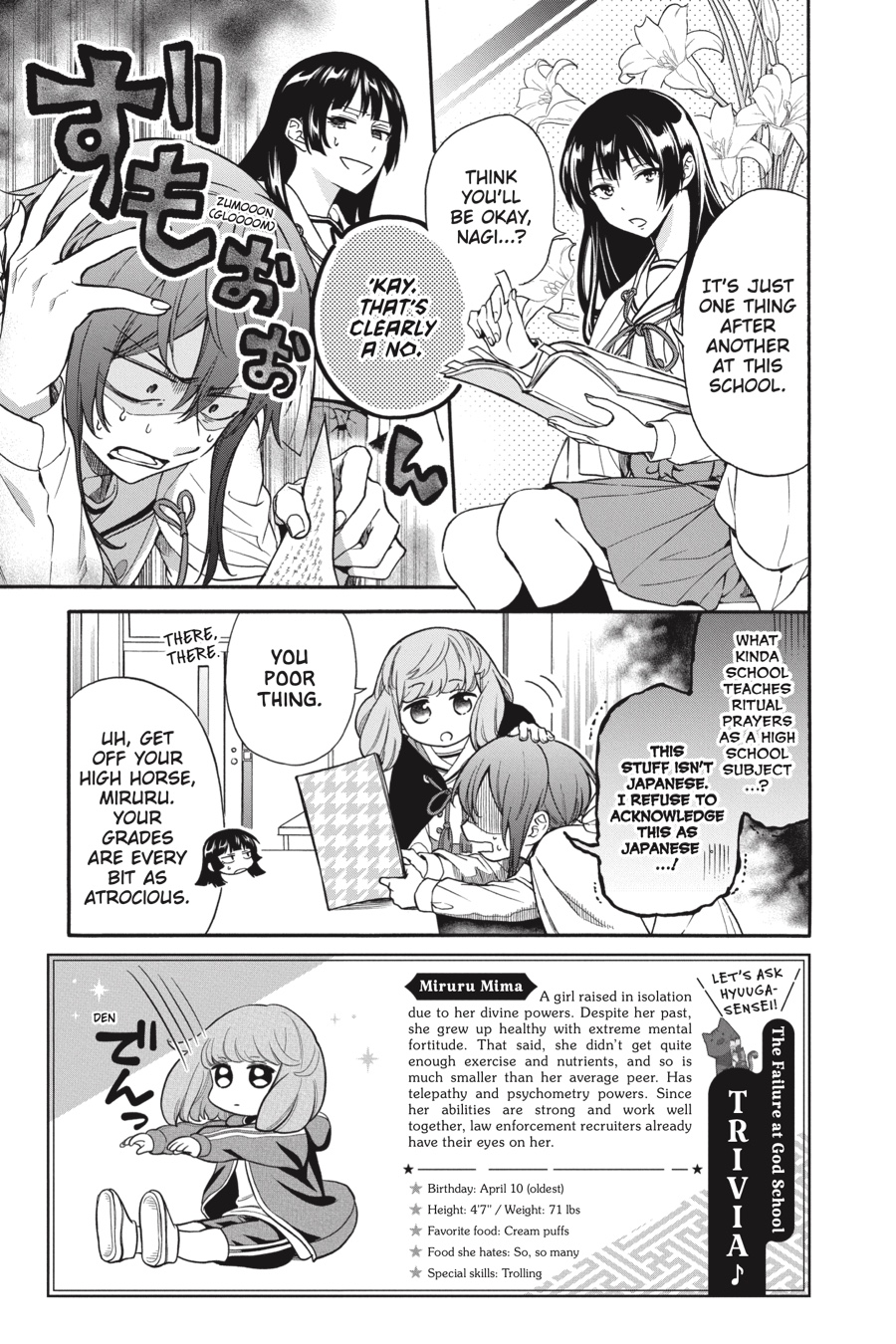 The truth of Nagi’s “shut-in” brother finally comes to light! But is Nagi strong enough to keep her eyes open and see it? The outdoor‑survival orientation is over at last, and Nagi can breathe a sigh of relief…or can she?! Because midterms are just around the corner, and most of the classes are all Greek (or, well, ancient, ritual Japanese) to her! Maybe Touta can help with that, given his curve-busting grades— if he doesn’t freak out, scream something about a “curse doll,” and rip the head off her brother’s plushie first!! Touta’s sharp mind and X-ray vision might be more trouble than they’re worth, because family drama and mystical intrigue were not on Nagi’s agenda…especially with her grades— and her survival at the academy—on the line!