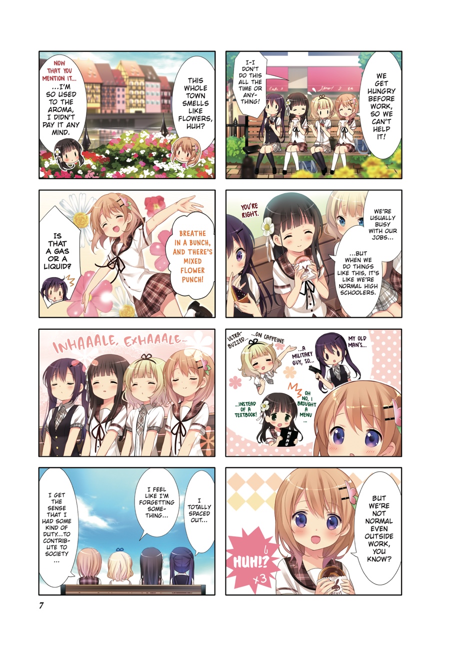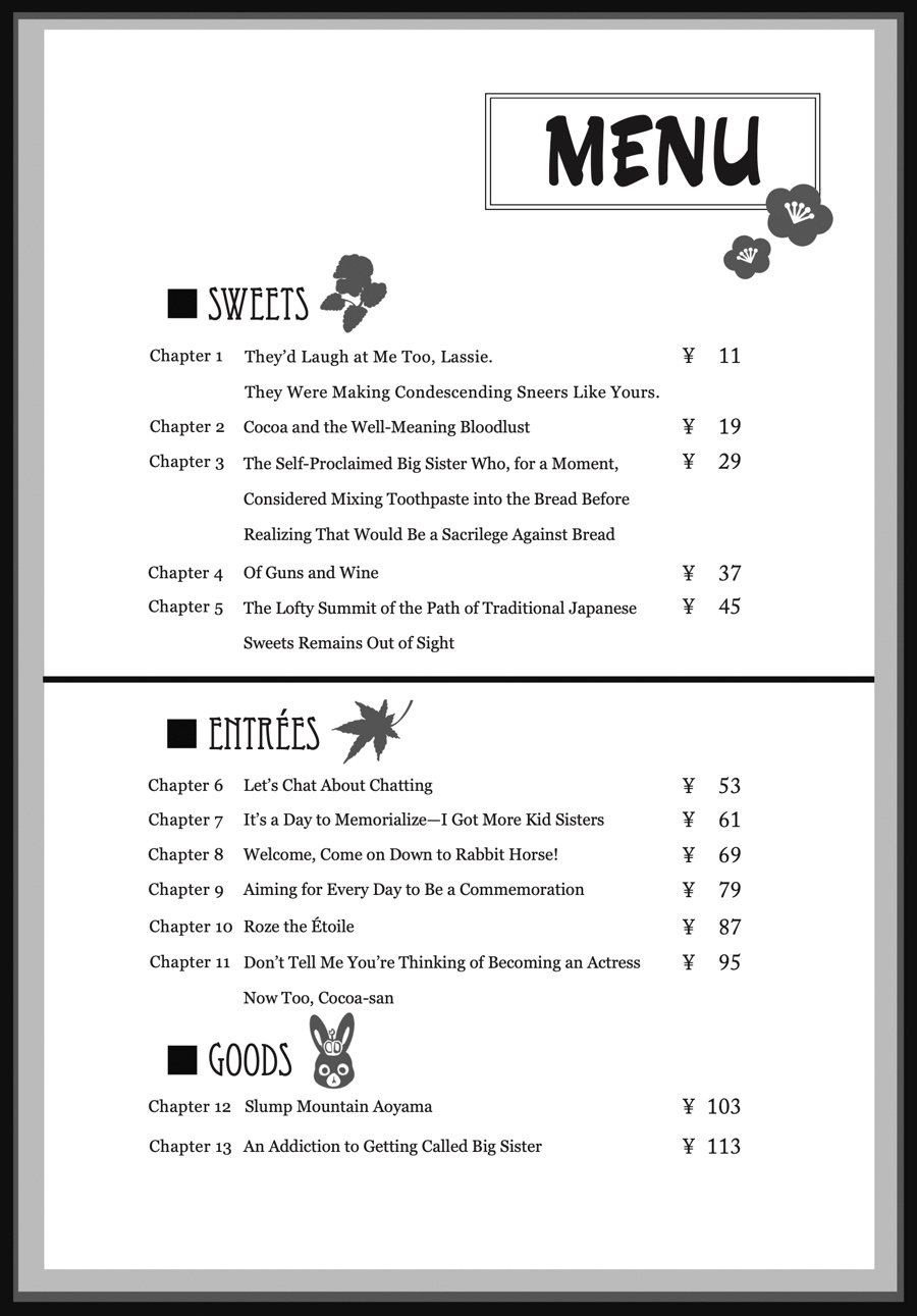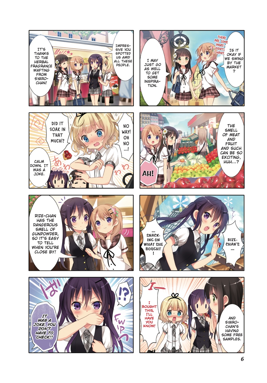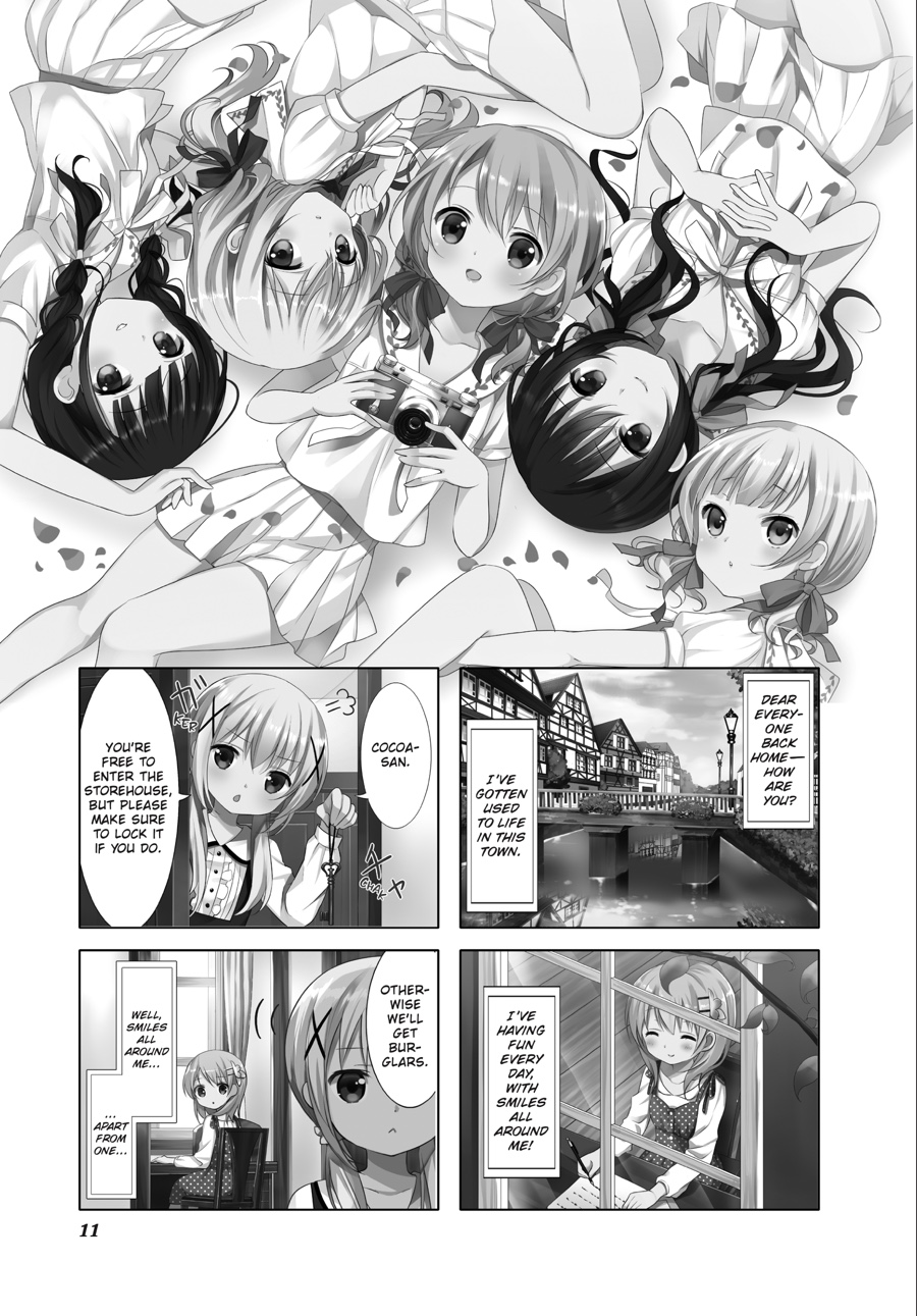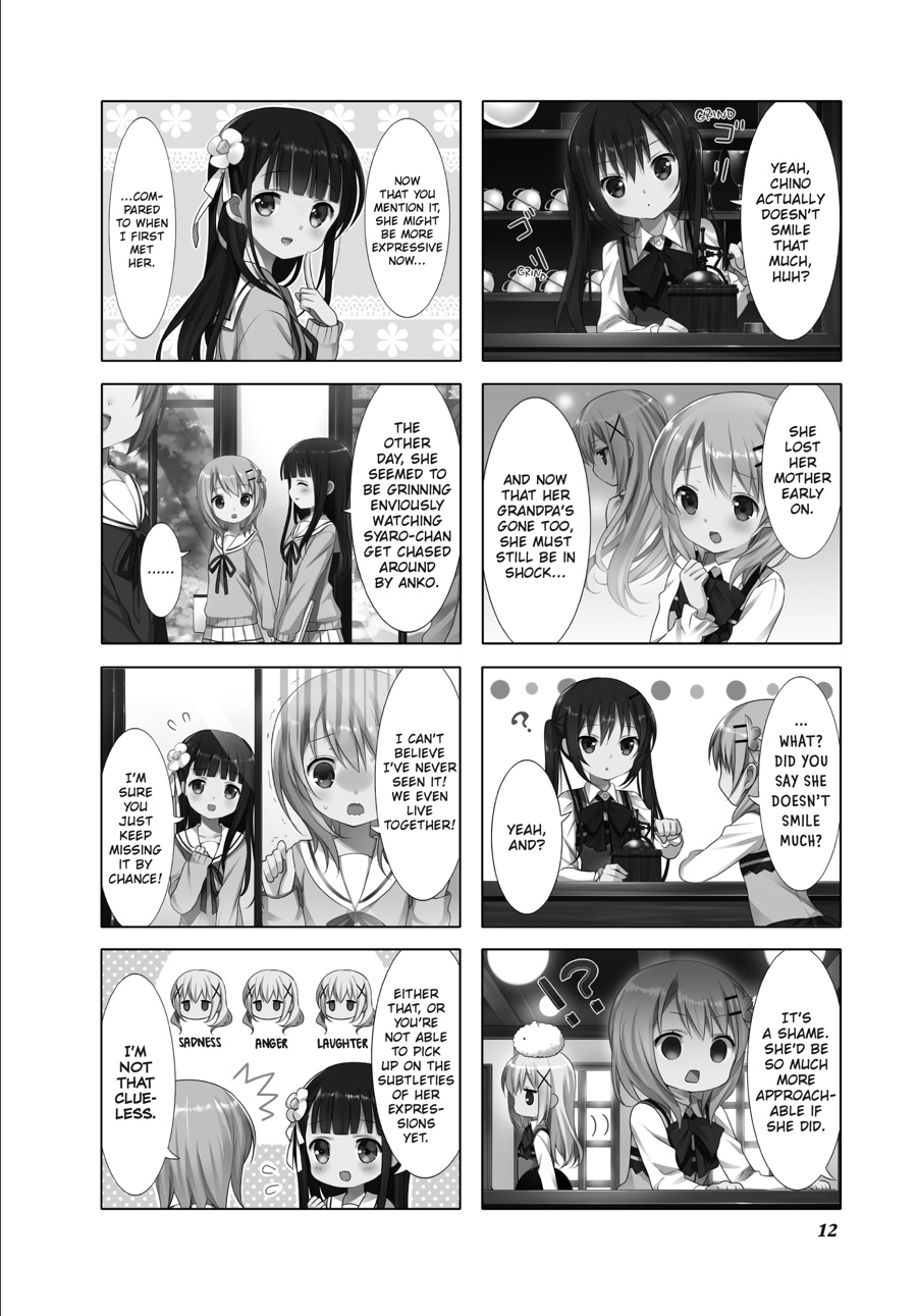 After stumbling across her homestay by sheer coincidence, Cocoa’s gotten used to life at Rabbit House Café—and along with Chino, Syaro, Rize, and Chiya, her high school days are filled with fun! Whether it’s practicing sports together or looking after one another, the girls grow closer day by day. And when Chino’s classmates Maya and Megu begin to visit—and the author Aoyama Blue Mountain, a regular, shows up—the café is livelier than ever!