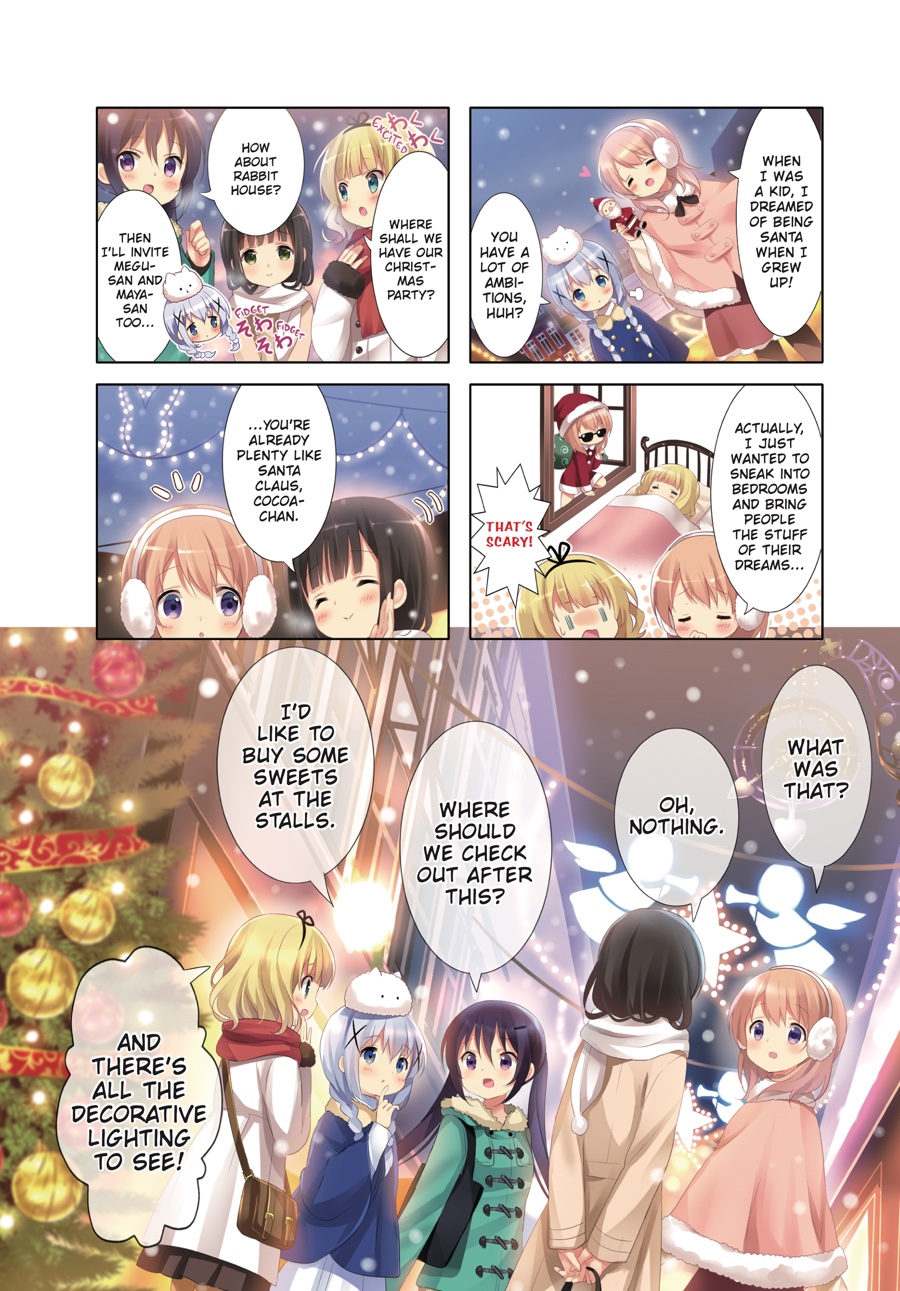 Free-spirited high schooler Cocoa continues to enjoy her time living and working at Rabbit House Café! She’s been pretty busy learning to ride her cherished new bike and staying with Chiya while they study for exams. But as always, Cocoa’s and her friends’ daily lives are full of hilarious and heartwarming moments—from doing laundry to investigating an age-old rivalry. Plus, with Christmas coming up, there’s even more to get excited about!