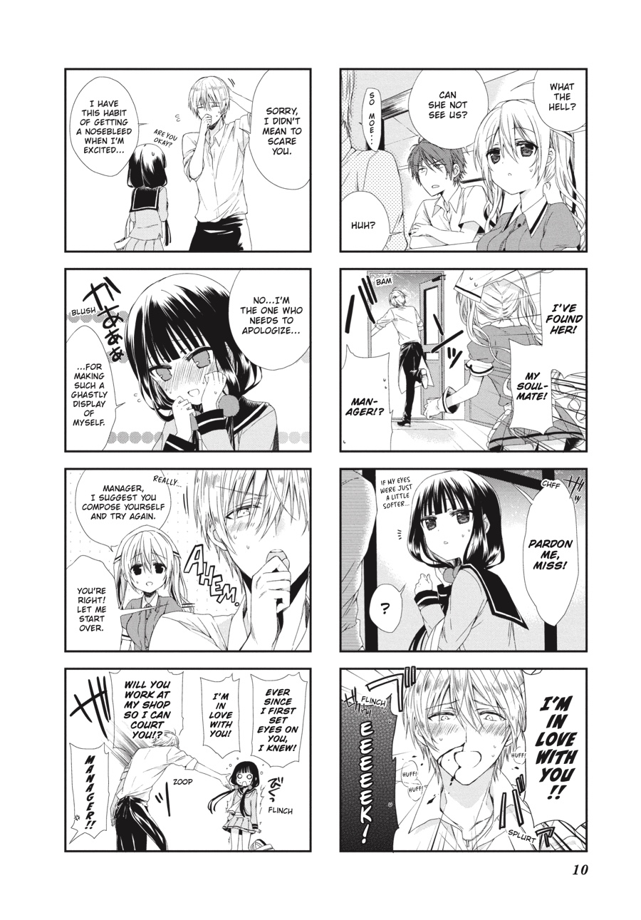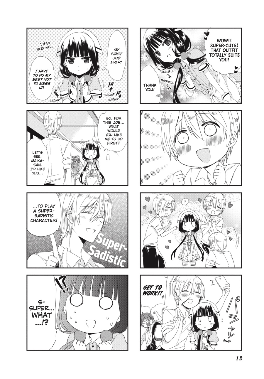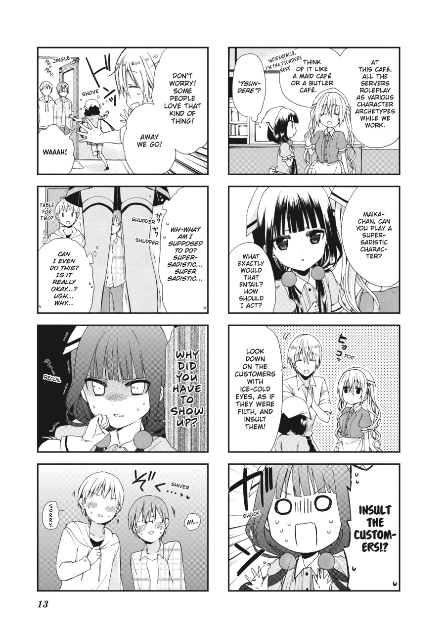 Thanks to a natural glare that could scare off the most hardened hiring manager, high schooler Maika Sakuranomiya can’t seem to land a part-time job. So when opportunity knocks, she jumps at the chance. Waitressing at a cute café with a hot boss— sounds perfect! The manager demanding each waitress adopt a quirky persona? Not a problem. Maika’s all ready to act flirty, hot-and-cold, like a little sister… wait, sadistic? Oh. Um, that might be tough for our cheery and caring heroine!