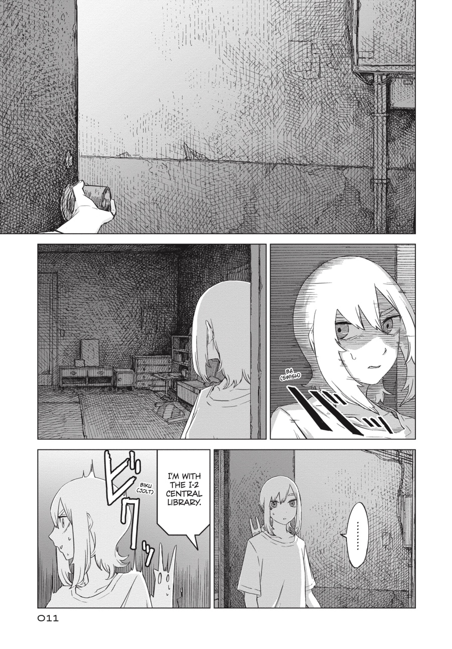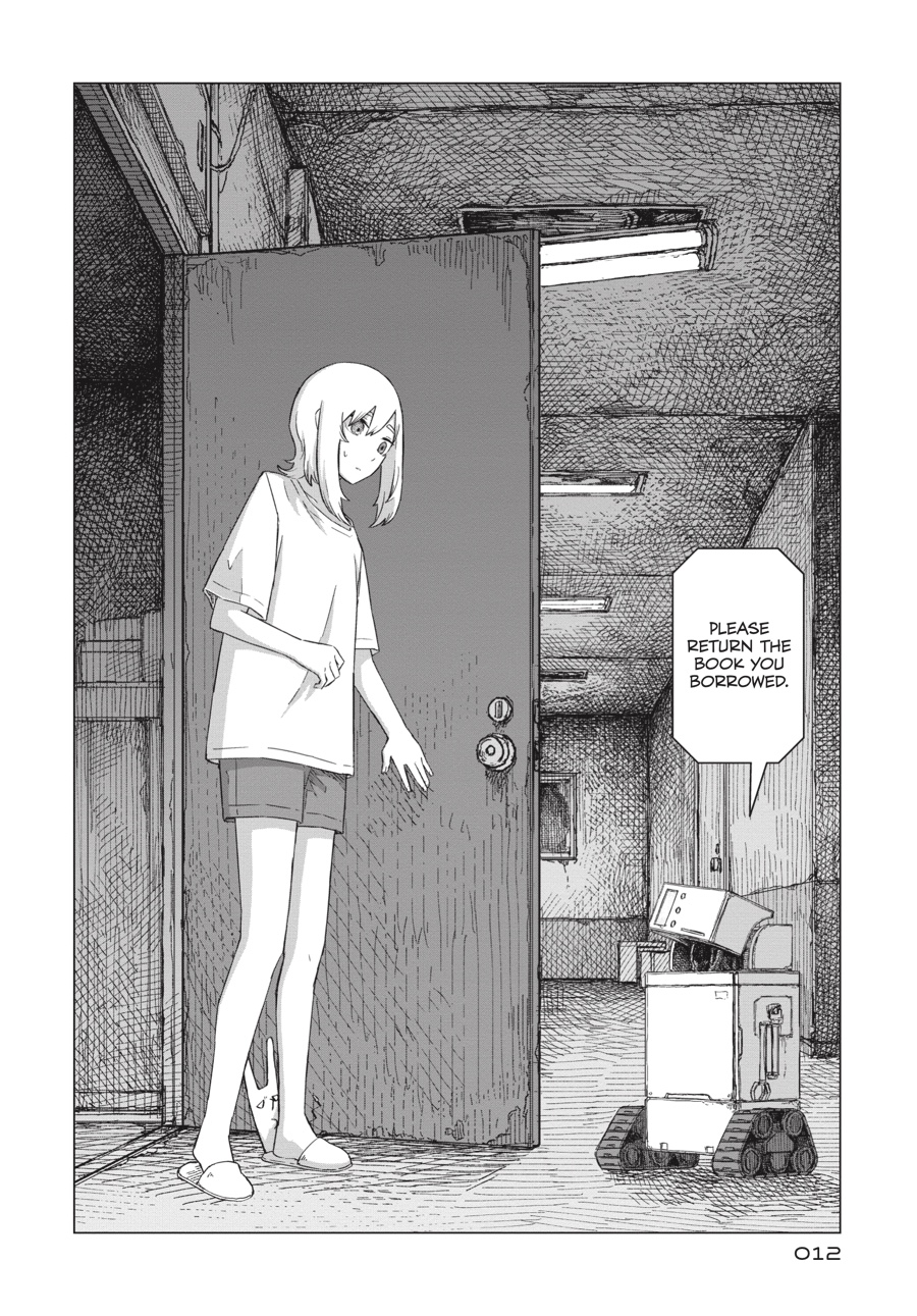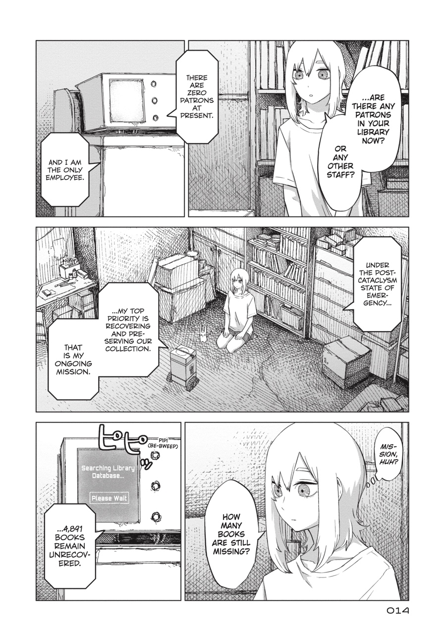 As Saya continues to pick through the ruins of civilization, a single robot appears before her. The library it manages may be bereft of visitors, but it devotes itself to its task out of respect for the late librarian’s wishes. In the face of such loyalty, the girl can’t help but ponder her own seemingly endless mission. Are there still any survivors left for her to find?