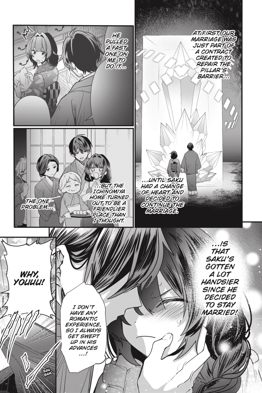 Saku has declared that he wants Hana to remain his wife, and their once-temporary marriage is now permanent! Will a lavish beach villa and relentless romantic advances be enough for Saku to win her over for real? And after dangerously powerful talismans are stolen from the Association of Practitioners’s custody, Hana must prove once more that she’s up to the task of being the Ichinomiya head’s bride!