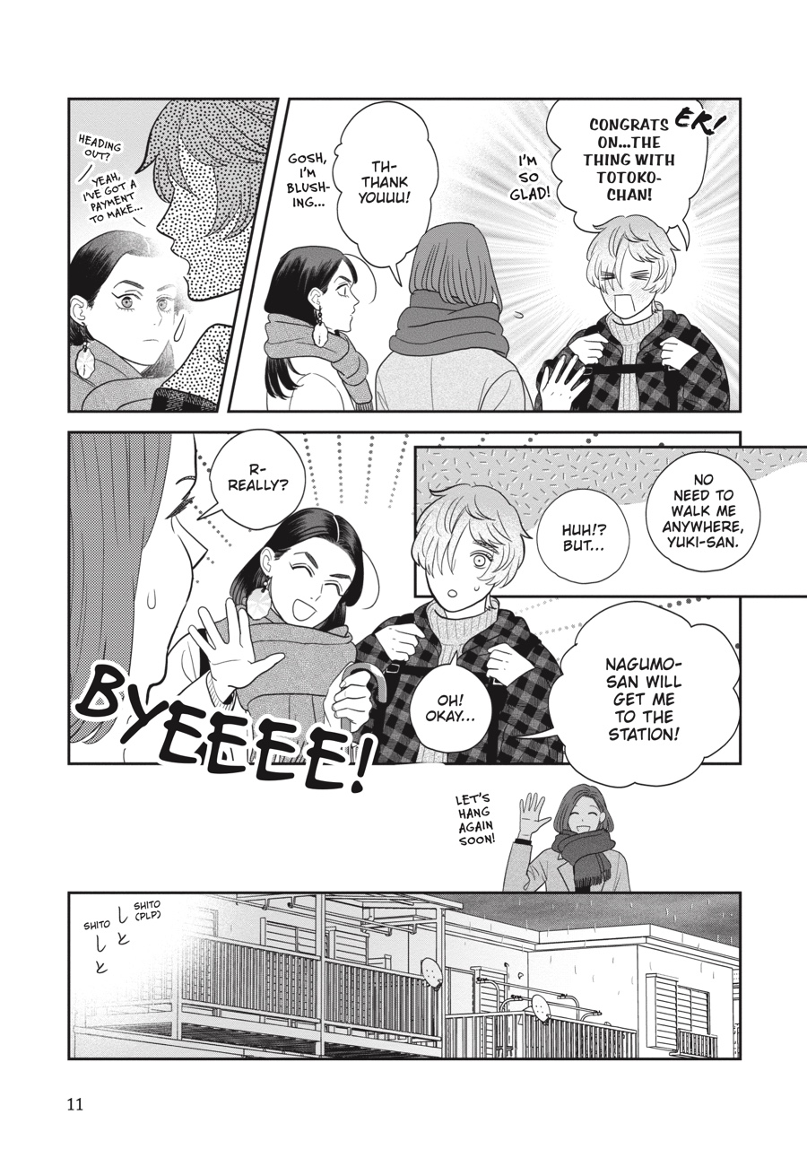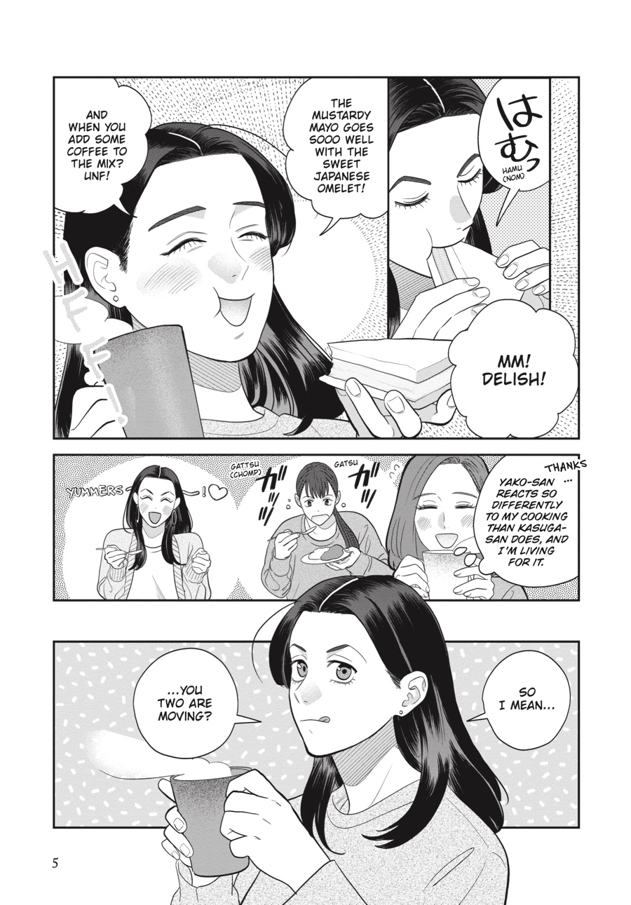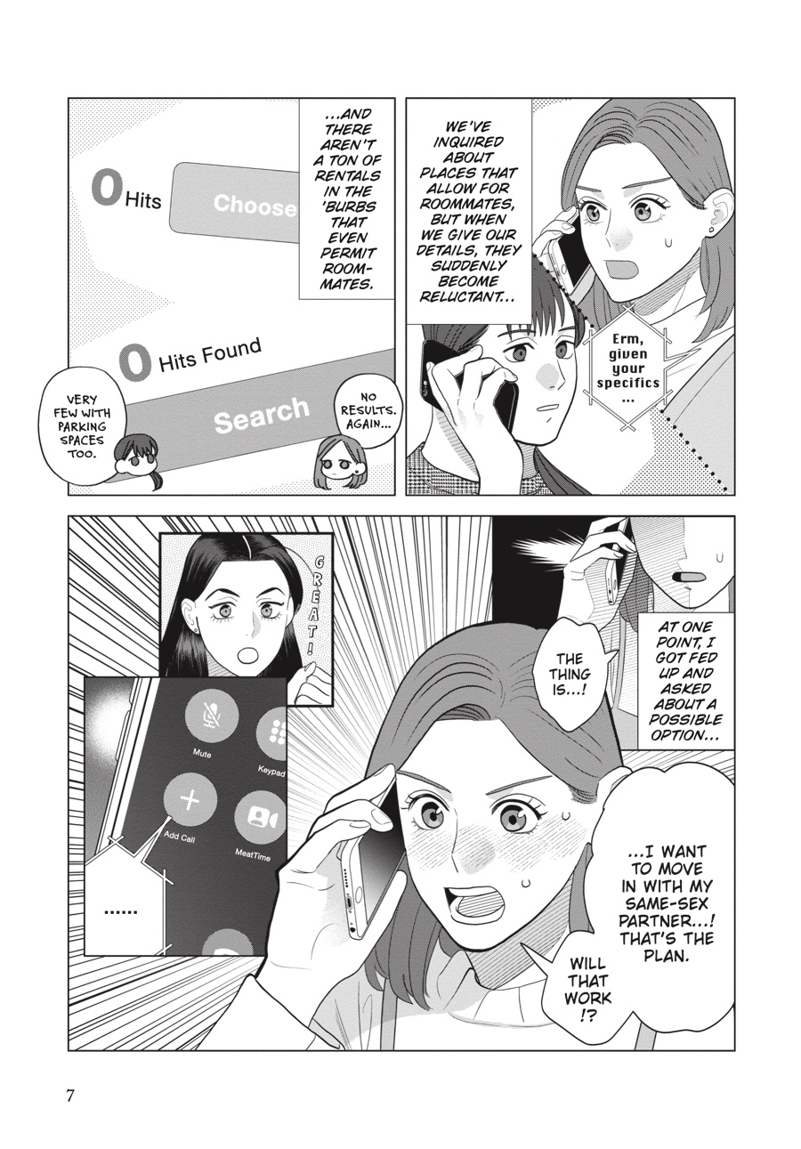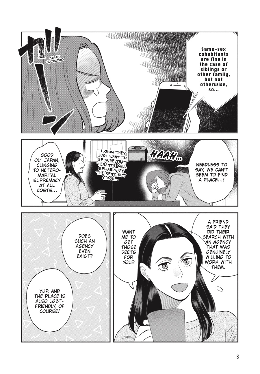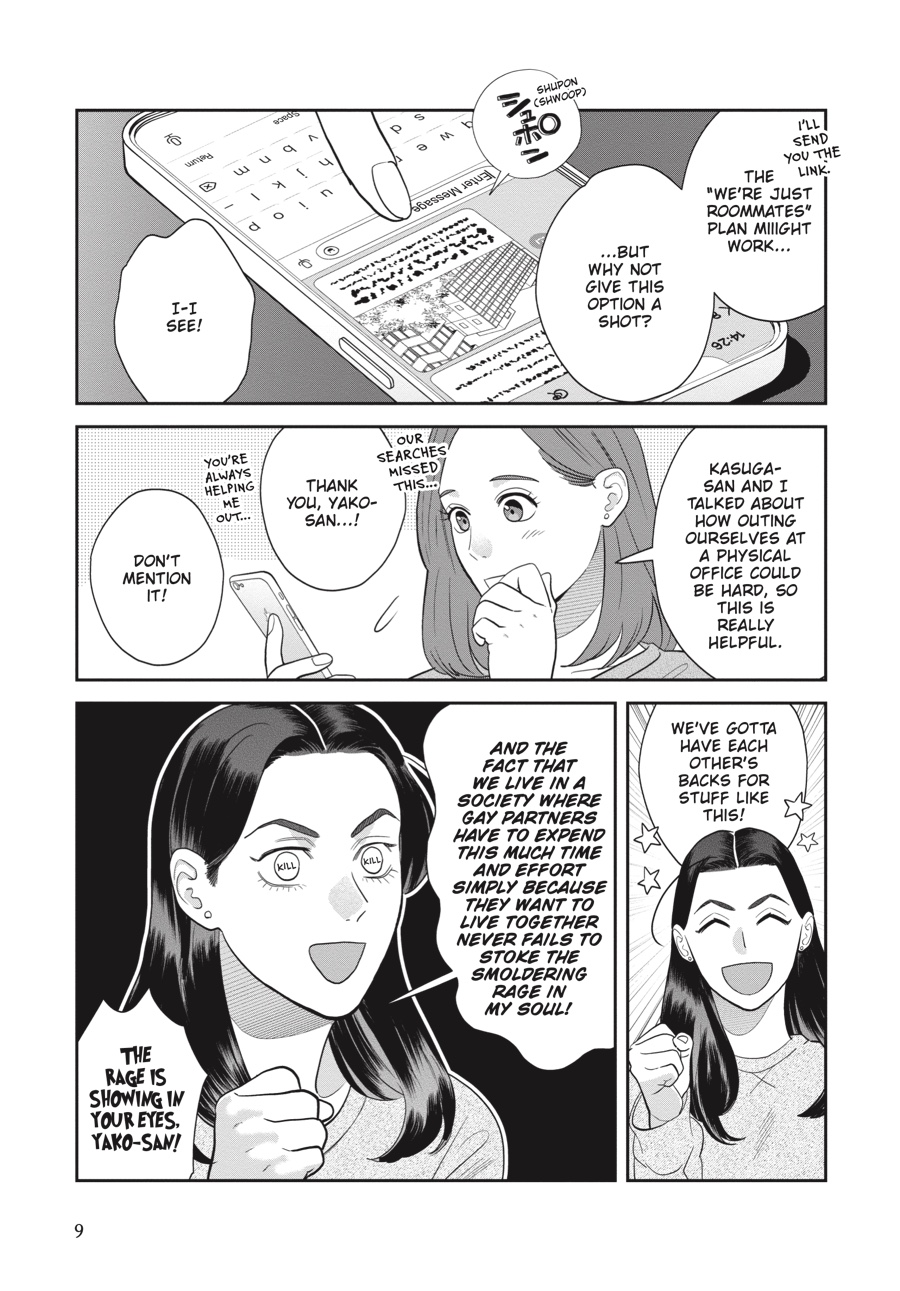 Nomoto-san and Kasuga-san have decided to live together, but apartment hunting as a same-sex couple has been quite the stormy voyage. Luckily, Yako-san connects them with a realtor that may be able to help—and slowly but surely, the pair move toward their new life together. Meanwhile, Nagumo-san has taken a good look at herself, and she decides to pay a visit to the hospital…