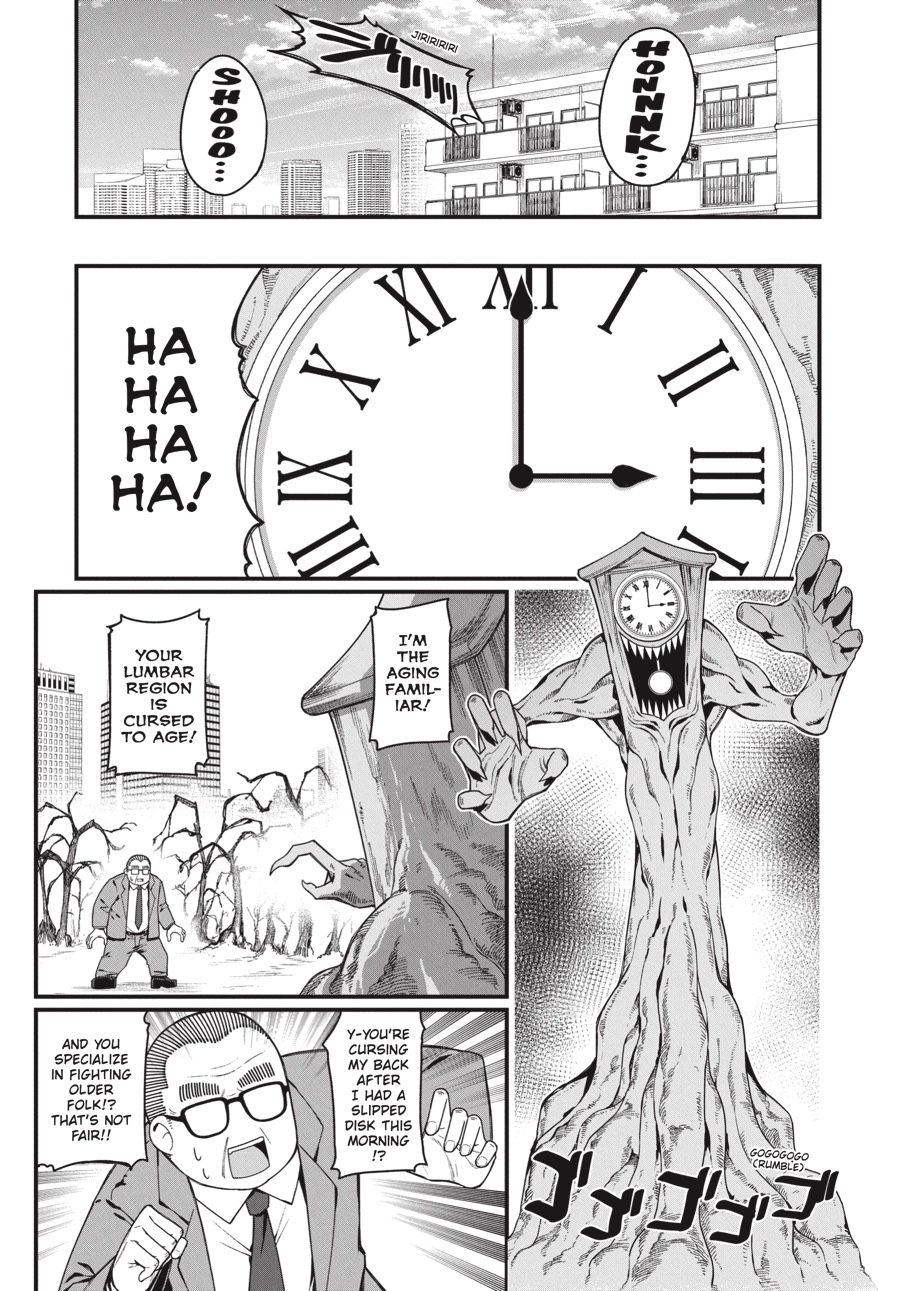 Tanaka’s no stranger to a long day on the job. After all, pulling overtime and suffering from muscle pains for the greater good comes part and parcel with being a magical midlifer. But with a new hire to train, whispers of the Death Witch resurfacing, and the president of Japan’s biggest countermagic corporation on his tail, this old man’s certainly got his work cut out for him!