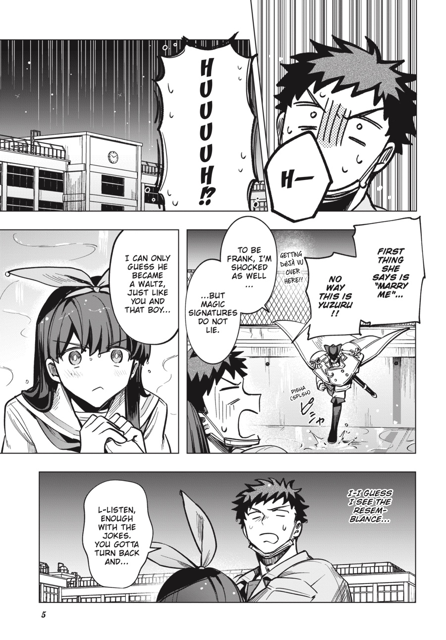 The investigation into the girl in the black school uniform continues! Having just become a Waltz through a life-threatening confrontation with Misaki Suga, the first thing Yuzuru Saotome does is…propose to Hiromi?! With a new magical girl on their side, the team is once again hot on Misaki’s trail as they unravel Yuzuru’s hidden past and the truth behind Misaki’s existence. But when all is said and done, can Hiromi step up to the plate and become the hero of his dreams…?