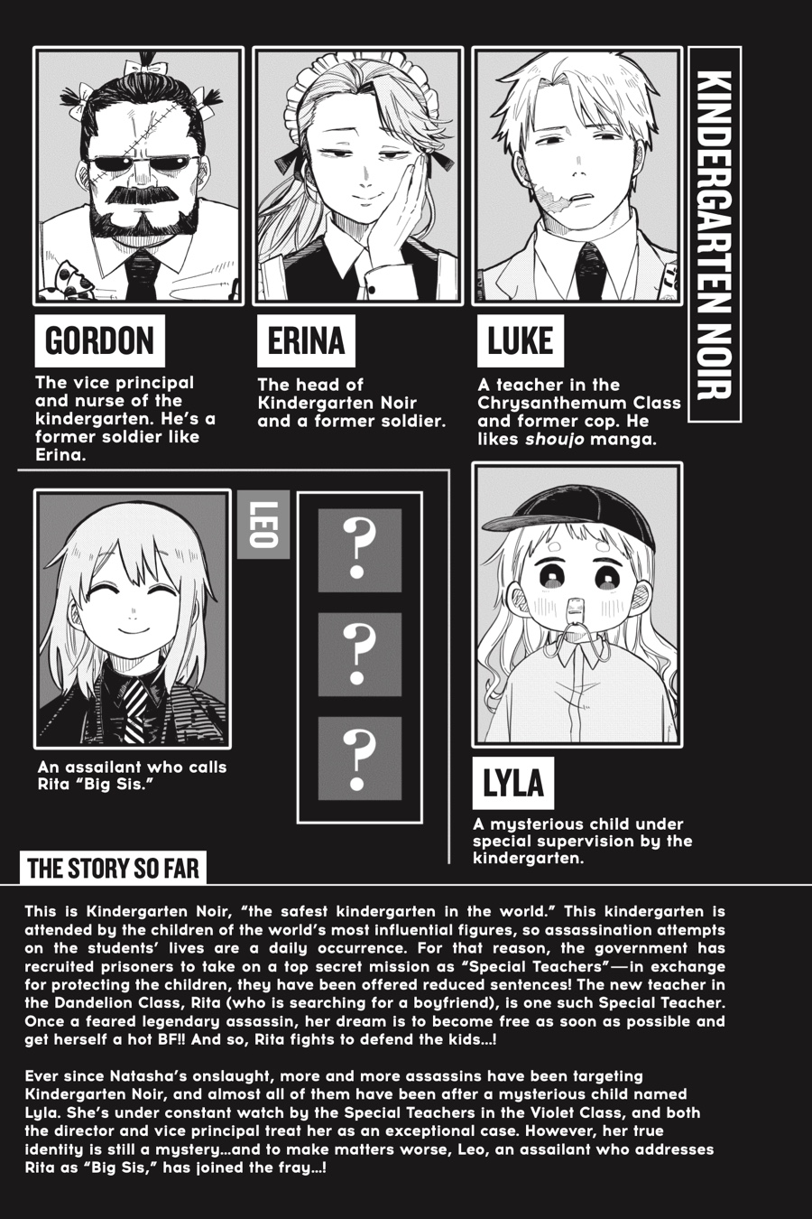 In a bid to capture Lyla, an exceptional little girl shrouded in secrecy, a whole squad of assassins has initiated an all-out war on Kindergarten Noir. Their leader? None other than Rita’s own twin brother, Leo! When the Dandelion class teams up with the hyper-competent—or maybe just incredibly unhinged— teachers from the Chrysanthemum class, can their combined efforts keep the enemy at bay?