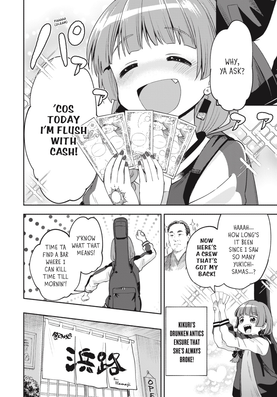 Kikuri Hiroi-genius bassist of Sick Hack, terror of concert venues, eternal deadbeat, and all-around poor role model-has always believed there’s no problem you can’t drink your way out of. The world might be dull and depressing, but whether it’s the failing economy, overdue rent, or just plain ol’ social anxiety, a quick trip around the spiral of happiness will help everything work itself out in the end, right? Surely her personal life isn’t a total disaster...right?! Find out in this freewheeling spin-off of Bocchi the Rock!