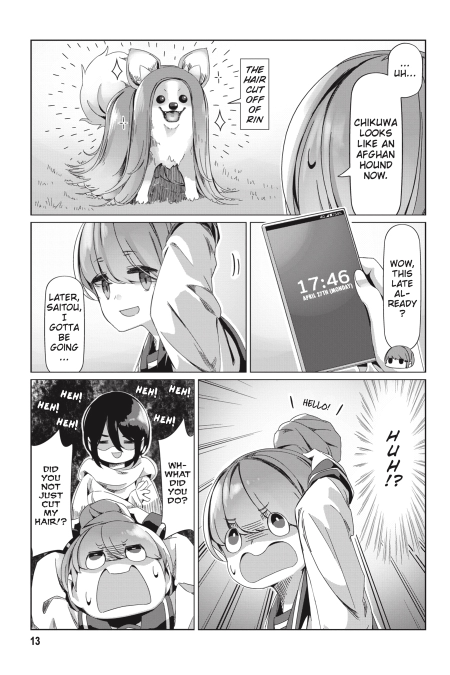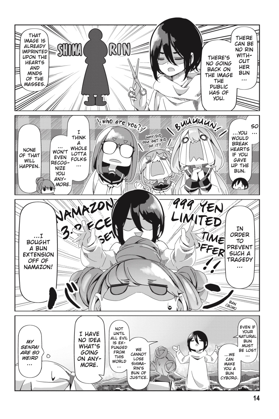 It’s Golden Week! Rin is out on her motorcycle, and Nadeshiko is making plans for the trip to Gunma. And it looks like their inexperienced new member—the one who likes to draw and has a part-time job is at an outdoors shop—might be doing something too...?