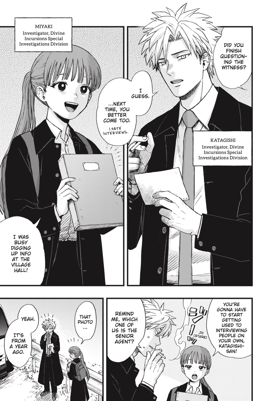Titanic body parts fall from the sky onto a town. The guts and viscera of corpses are mysteriously absent. And humanity continues to dream of eternal life and eternal youth. Katakishi of the Divine Incursion Special Investigations Department is on the case to uncover the truth of these phenomena, and other secrets that hit closer to home...