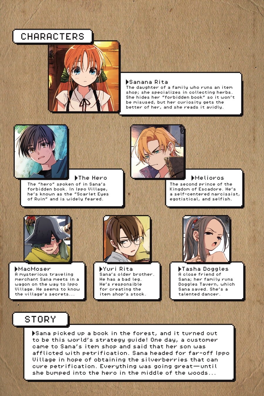 In search of silverberries for their ability to cure petrification, Sana makes her way east to the Bewildering Woods…where she comes face-toface with none other than the hero in her strategy guide, a boy named Tsubasa! Sana tries to direct the lost protagonist down the road he needs to take, endeavoring to support him while altering the story as little as possible. But after they part ways, will Sana’s efforts be successful, or will their encounter change what’s written for the hero—and the village?