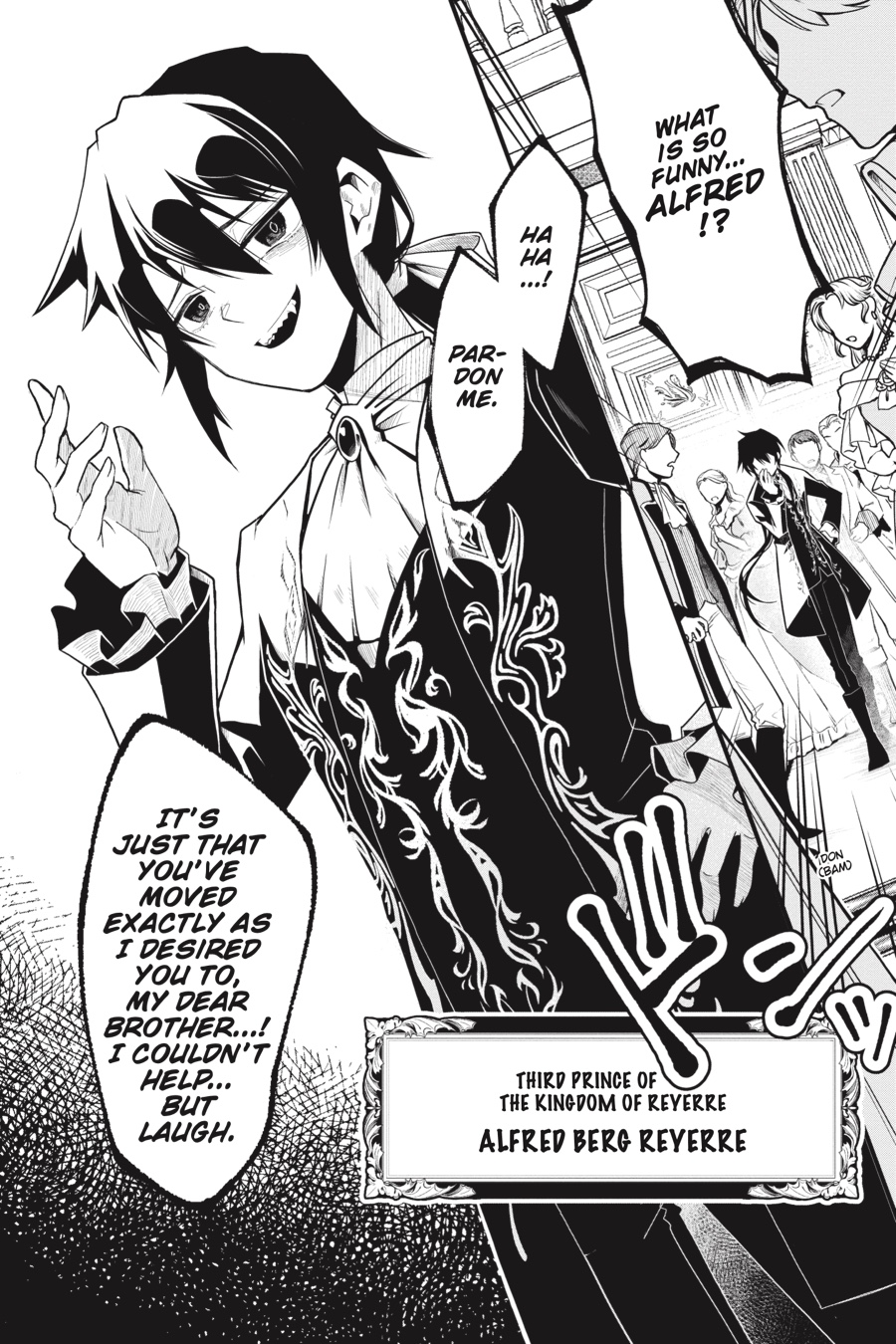 With his raven locks and ebony eyes, Prince Alfred is the cursed child of his kingdom, gladly shunned as a person of ill omen. One day, Alfred happens upon the scene of his older brother, Crown Prince Leor, publicly breaking off his engagement to his fiancée, Charlotte. Although not exactly a knight in shining armor, Alfred decides to save the damsel in distress anyway by taking advantage of his villainous reputation! Little did he know that single act would turn the wheel of fate and change his destiny…
