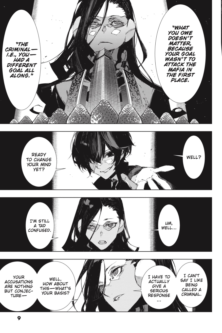 Dazai and Chuuya have the culprit behind this case pegged at last, but what was the villain’s motive? From the truth about Arahabaki to the mystery of the old boss’s resurrection—all the secrets are finally revealed!