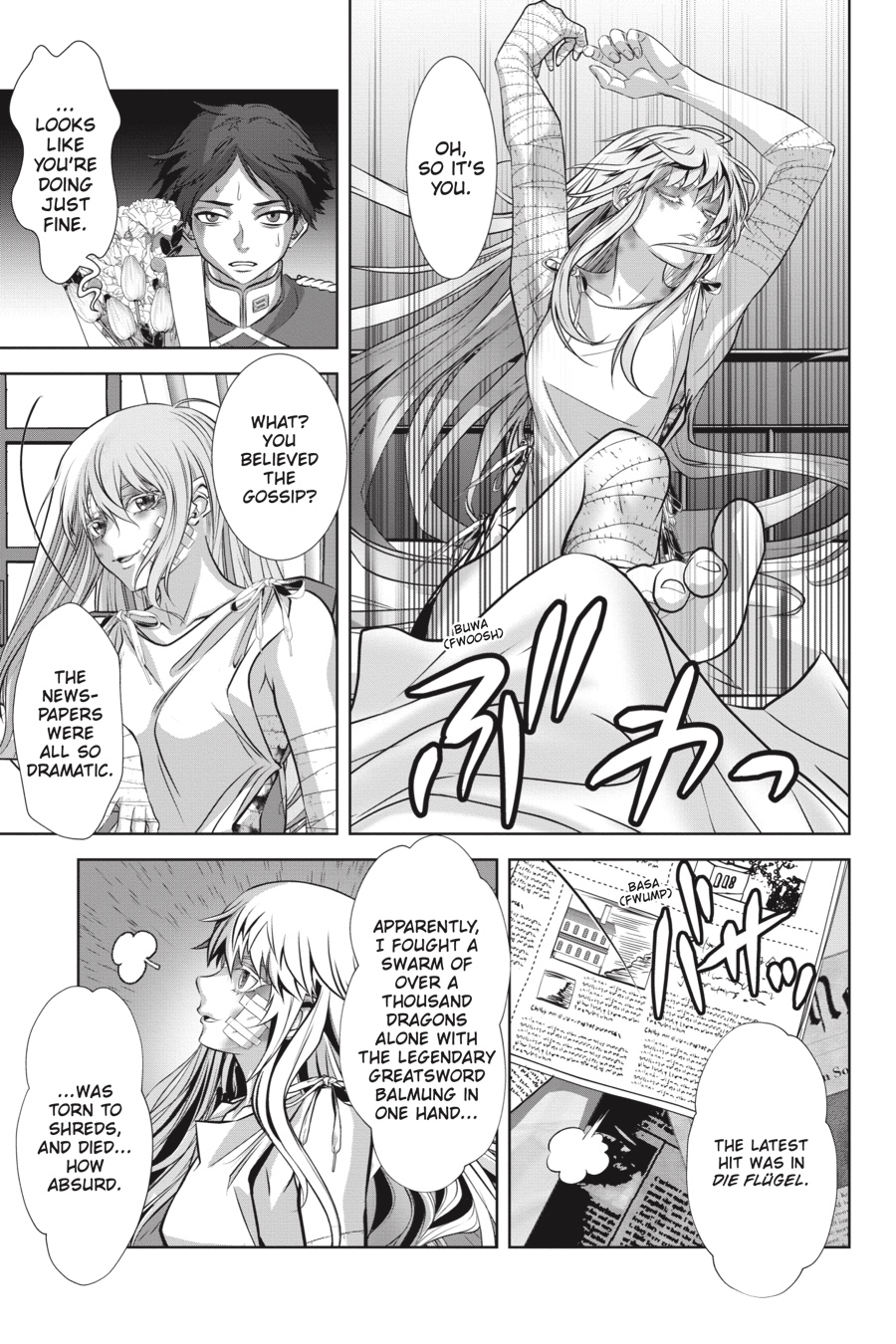Thanks to Brunhild’s heroic efforts, the group of dragons that suddenly attacked the Norvelland Empire’s capital, Nibelungen, is somehow driven back—but not before the city suffers heavy losses. Brunhild herself is gravely injured during the battle, and a worried Sigurd pays her a visit. There, Brunhild reveals the unimaginable truth behind the hellish assault…