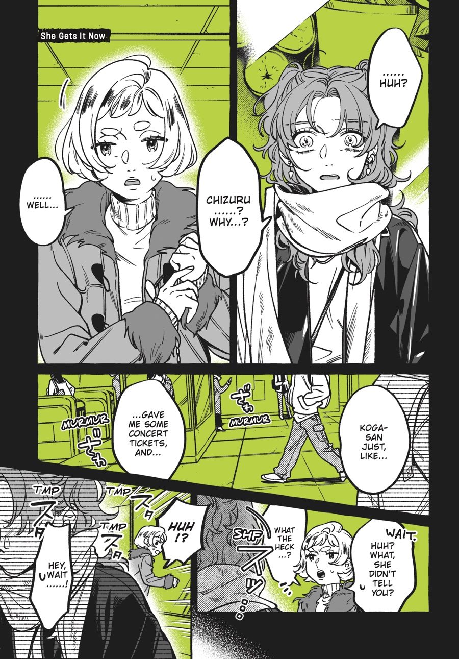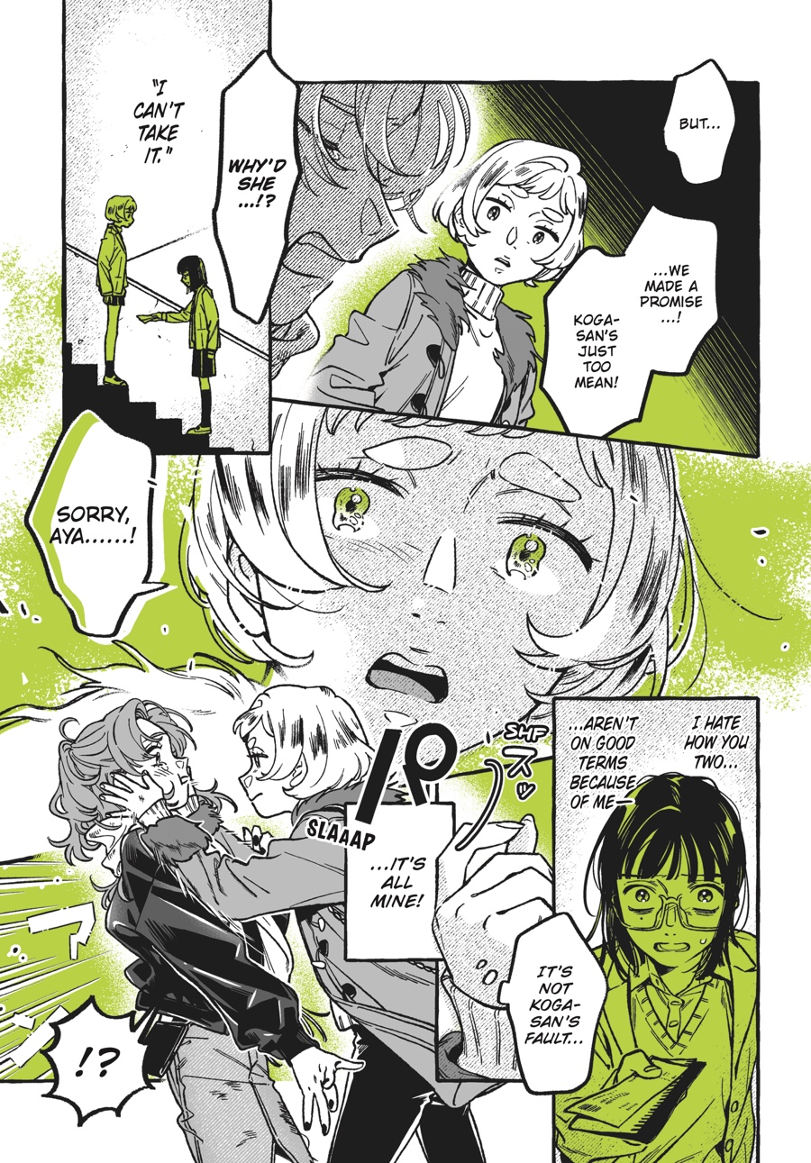 Aya’s found out that the guy she was interested in isn’t a guy at all—and she’s also realized that she just can’t keep her cool around Mitsuki! The two haven’t quite put a name on their complex, earnest feelings, but they only grow as the pair continues to bond over the music they love. With their senior year at hand, future plans are coming into question…and Aya’s thrown for a loop when a mysterious woman shows up and wants Mitsuki to go overseas!