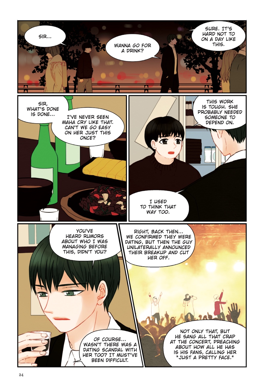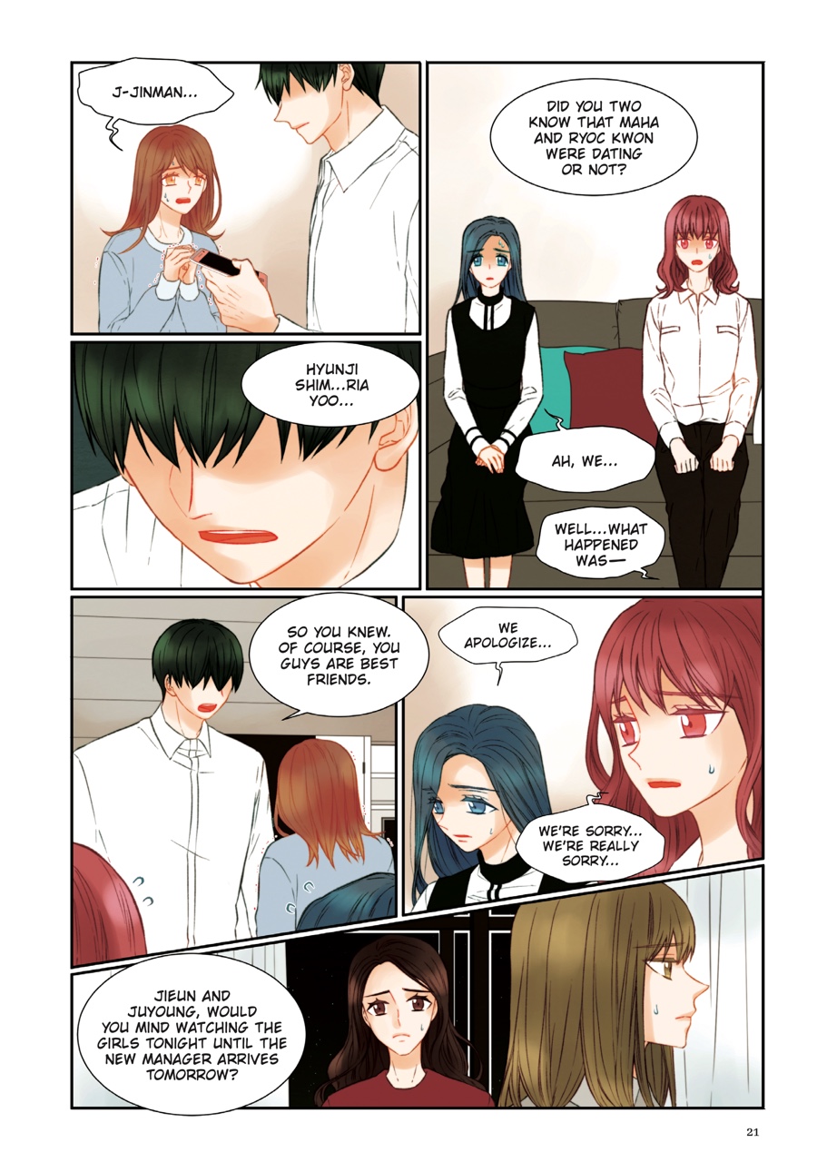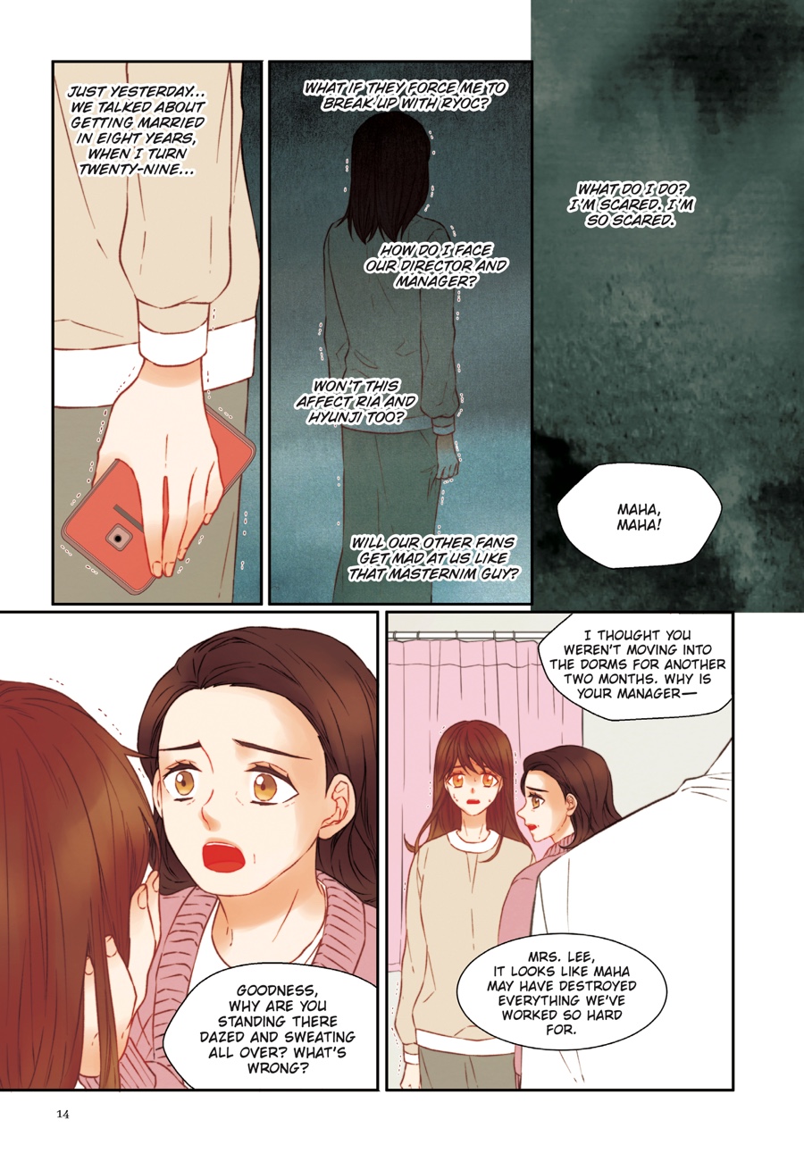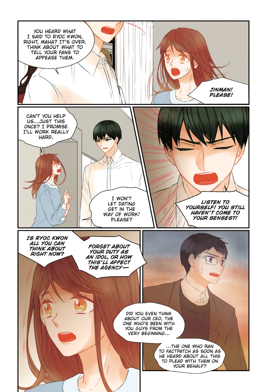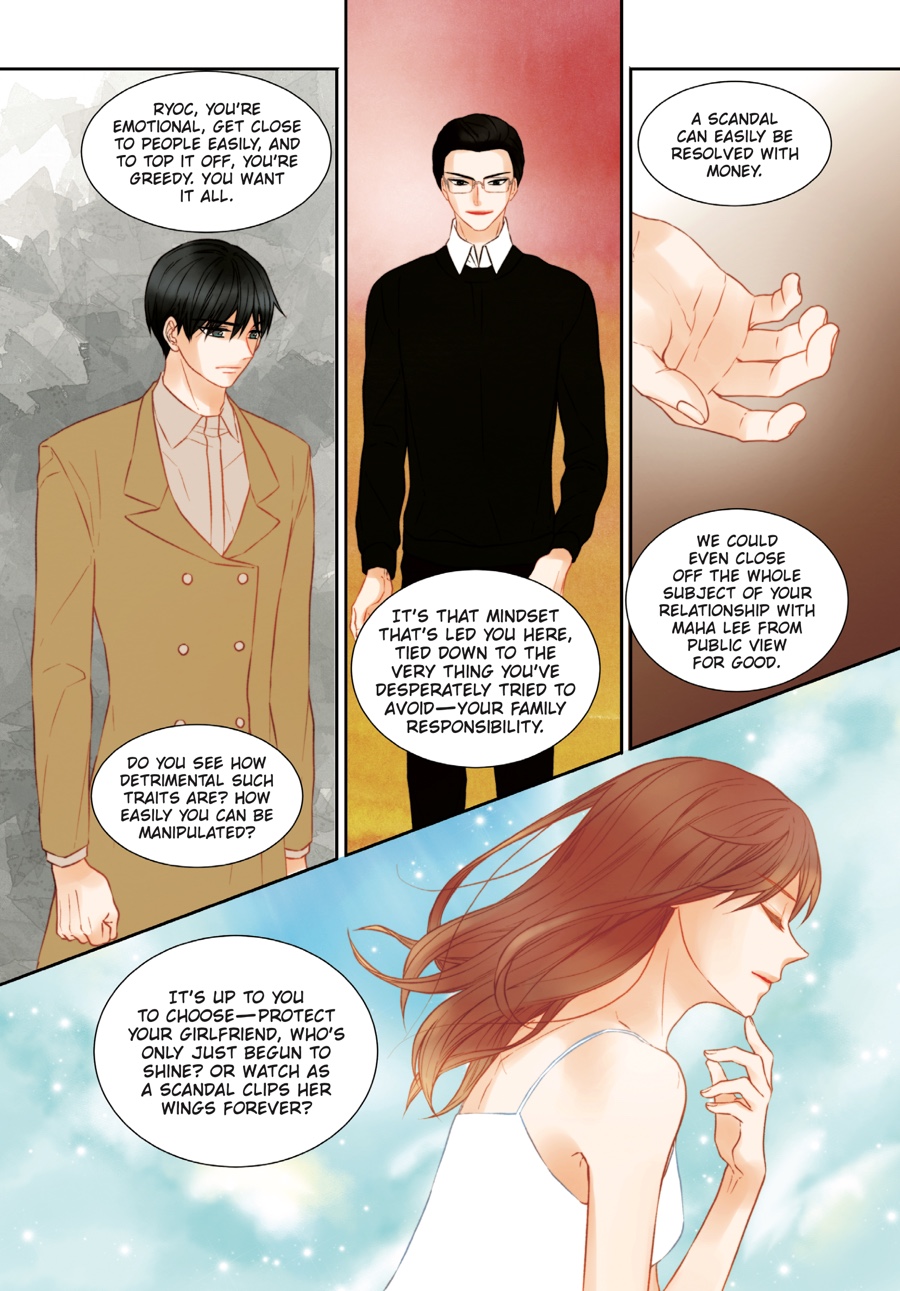 Vacation in Japan with Ryoc was a dream come true for Maha, but reality comes crashing down when the couple returns home to find that their secret has been compromised! This could be the end of Maha’s hard-earned career, but Ryoc is willing to do anything and everything to protect the girl he loves—even if it means bending to his family’s will. Meanwhile, recent events have brought Hyunji’s frustrations with Maha to a head, pushing her to finally do something about her feelings for Yujin. When work and feelings mix, things are bound to get messy…But in the world of stardom, is there any room for romance?