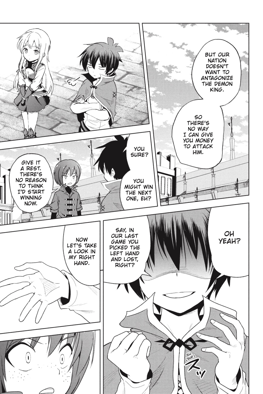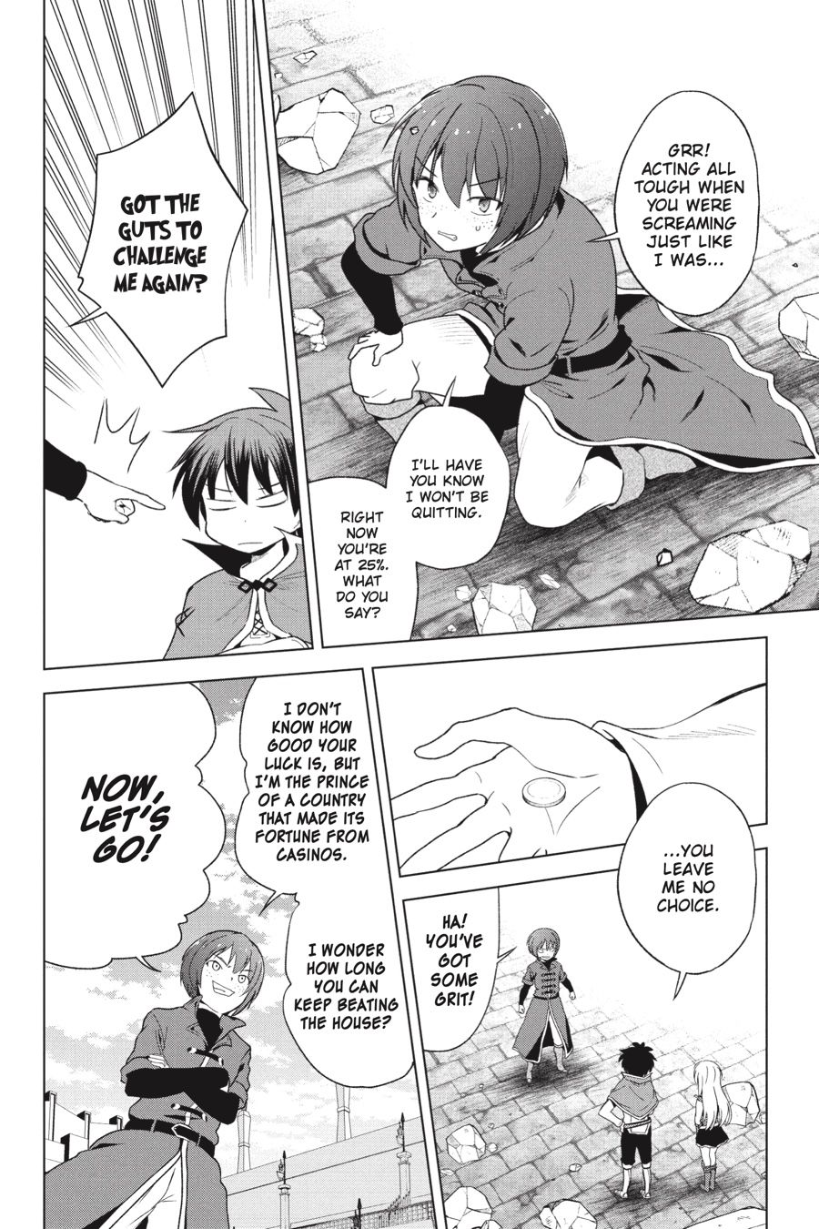 After challenging Prince Levy in an attempt to secure more funding for Belzerg’s defense, Kazuma and Iris are taking down everything he can throw at them! It’s hard to stop when they’re on such a roll, so the two continue to challenge him again and again, but is Levy really going to let them take him for all he’s worth?
