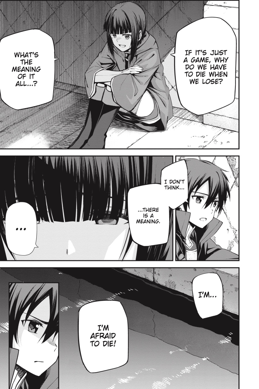 After saving the Moonlit Black Cats, Kirito is drawn to their warmth and camaraderie, which persist even in the bleak world of SAO. He sets aside his “beater” identity and joins their ranks. With Kirito’s help, the formerly weak guild makes quick progress and seeks out more powerful foes. But Sachi, the guild’s only female member, is on the verge of a breakdown, living in constant fear of death, and she wants desperately to escape the game world. So when she suddenly disappears one night, Kirito rushes out to find her, fearing the worst…