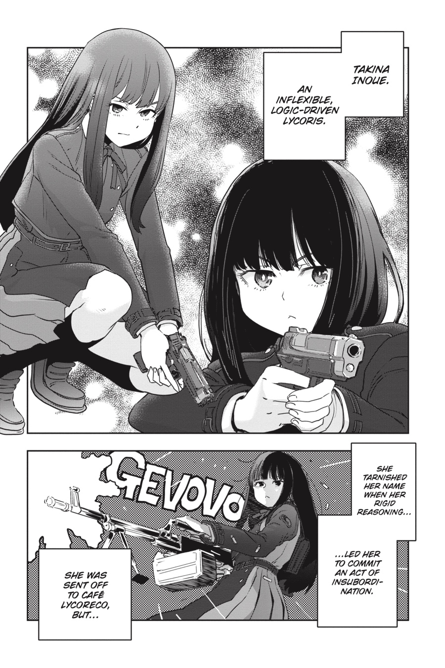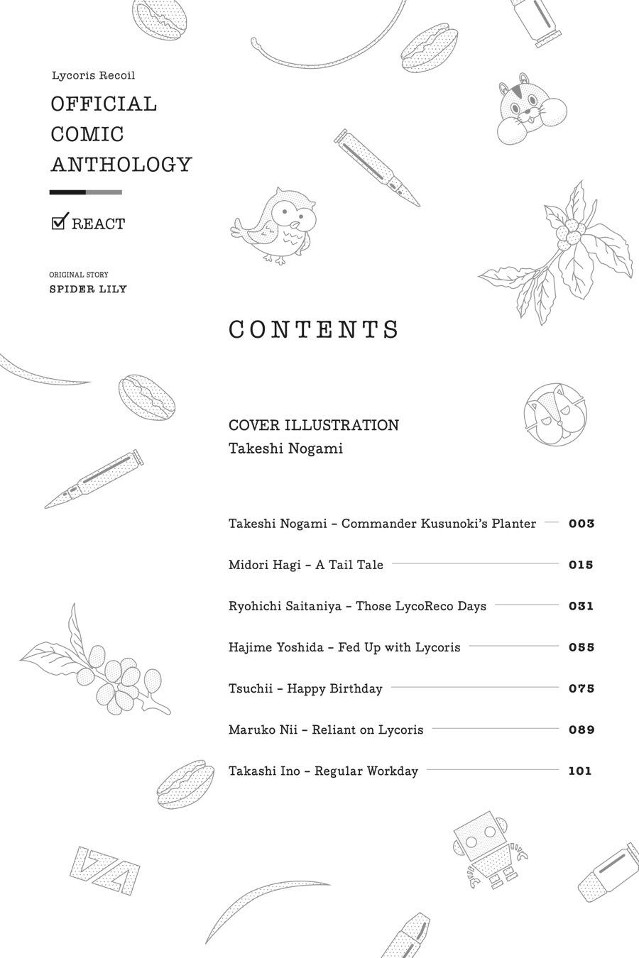 Welcome to Café LycoReco! From devising new menu items to balancing the books, get a taste of the daily lives of Chisato, Takina, and the rest of the LycoReco squad in this official comic anthology!