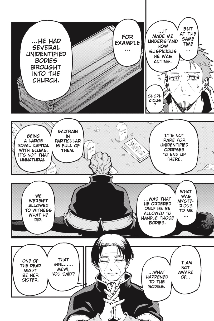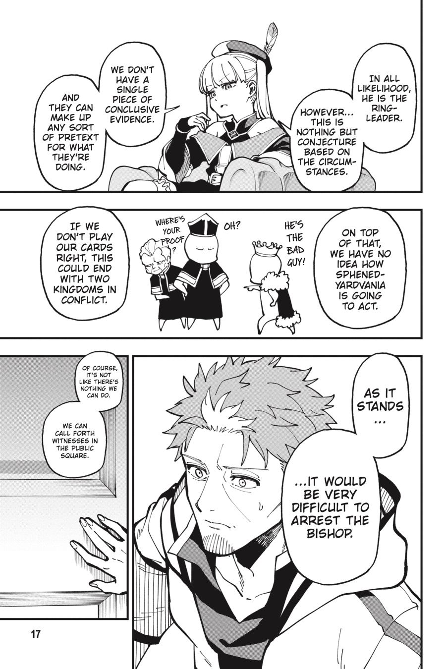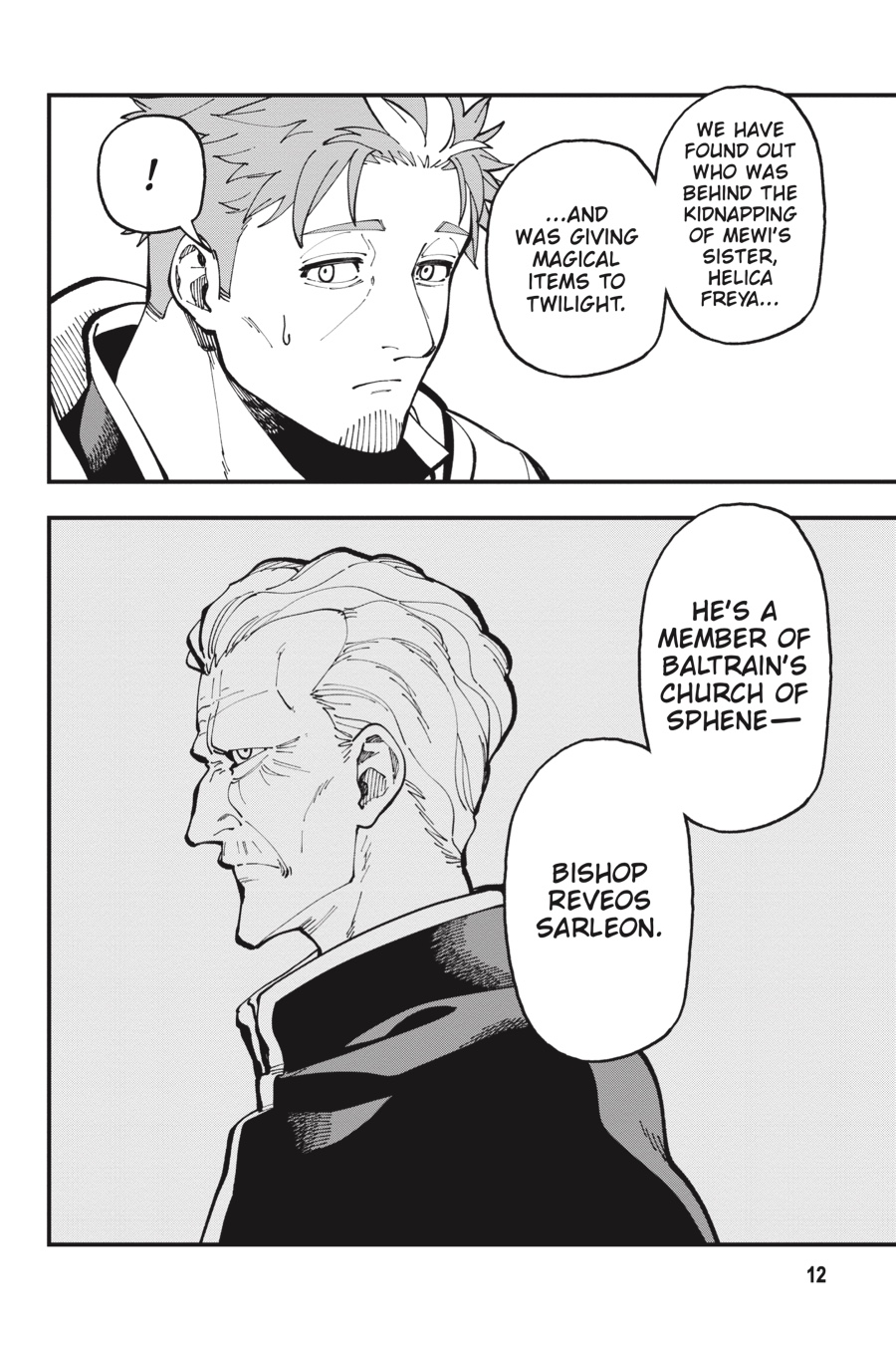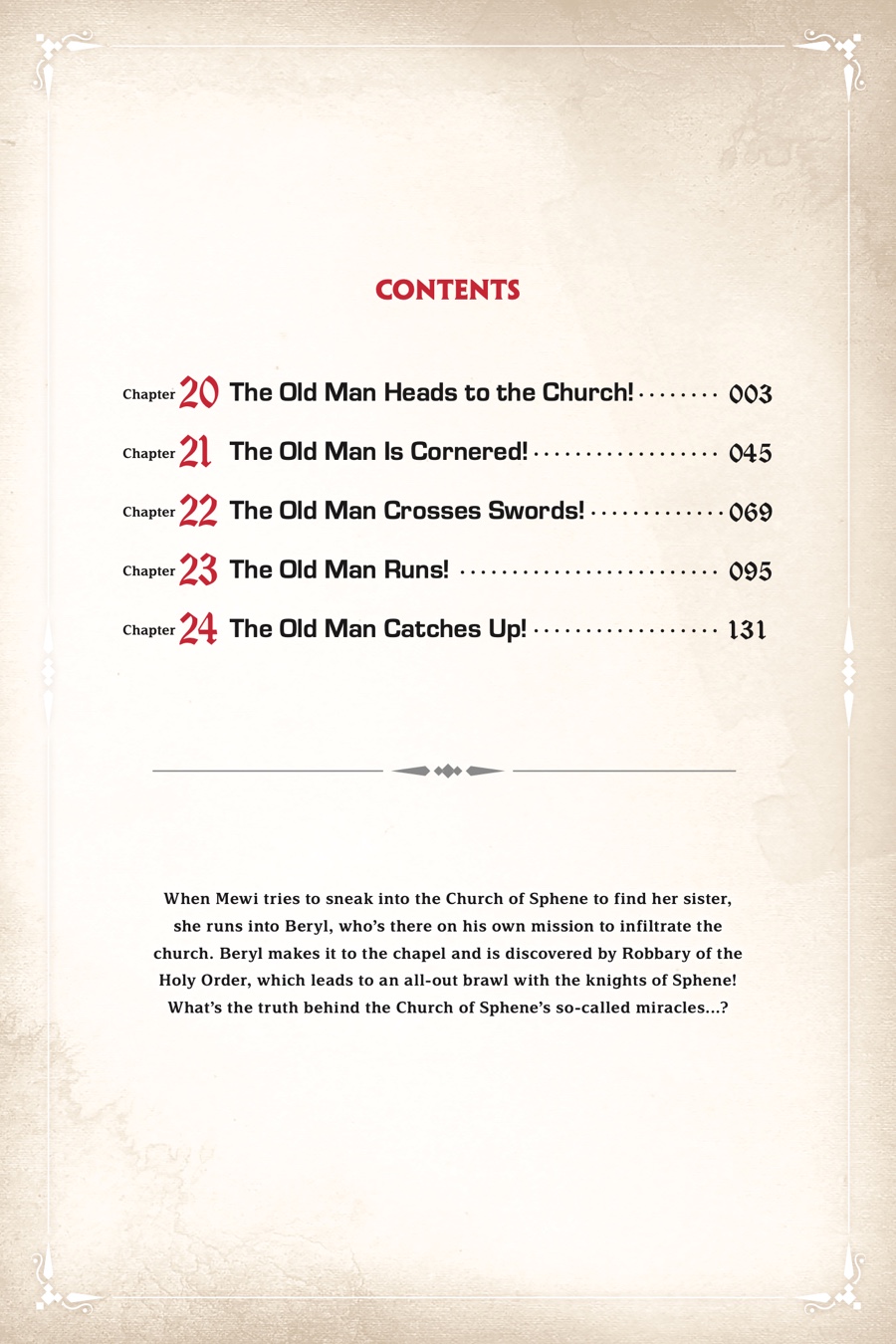While trying to sneak into the Church of Sphene to find her sister, Mewi runs into Beryl, who’s on an infiltration mission of his own. When Beryl enters the chapel, he’s discovered by Robbary, one of the knights of the Holy Order, and a fierce battle against the Order begins! What’s the secret behind the Church’s so-called “miracles”? And what’s more, Beryl has a fated second encounter with Spur, who's also a knight of the Order!