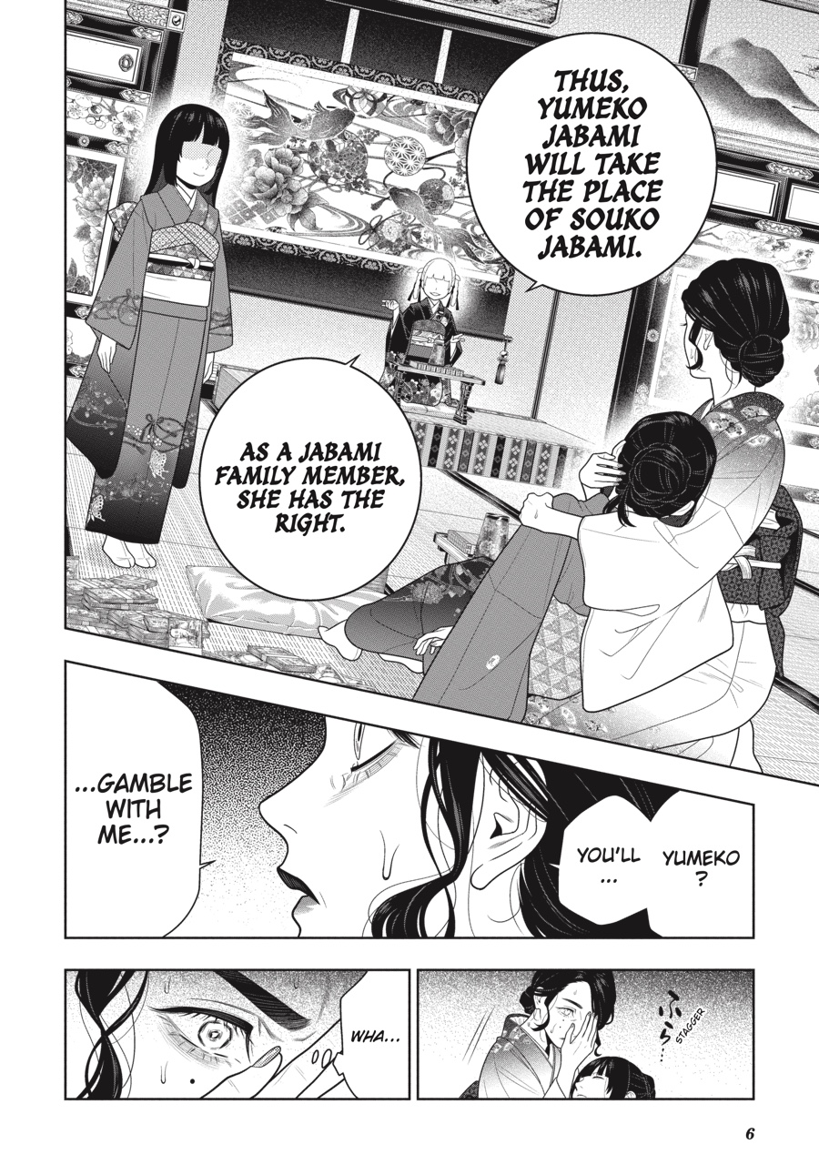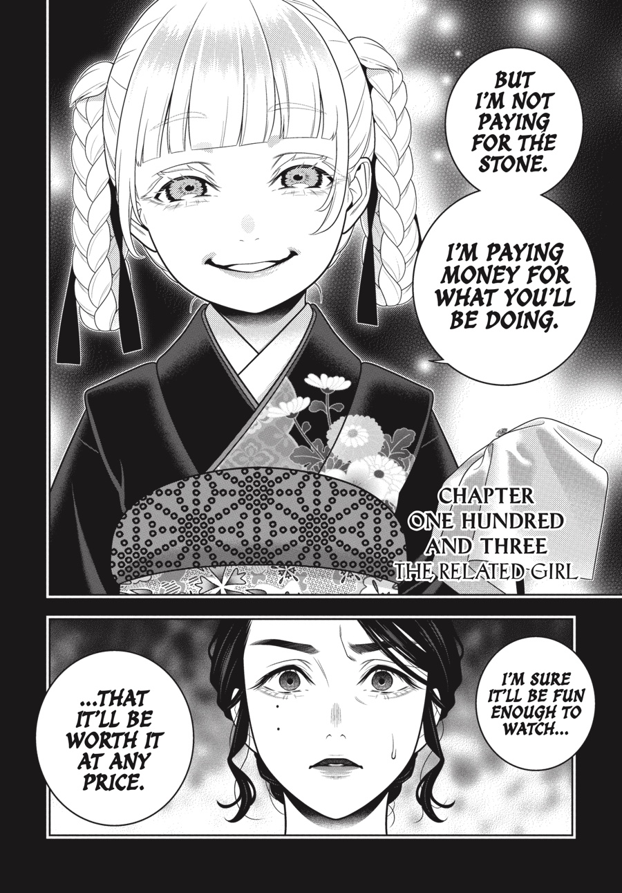 In Yumeko’s past, the battle between her sister and aunt for the Jabami name reaches its climax. To love is to deceive; to love is to destroy another’s will. Endless risk and despair also make for pleasure, forming the cradle that transforms a young Yumeko into the gambling fiend she is today. And as the story returns to the present, what new stage awaits the students of Hyakkaou Academy…?