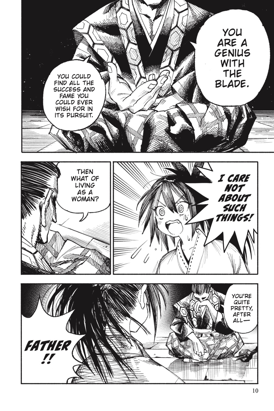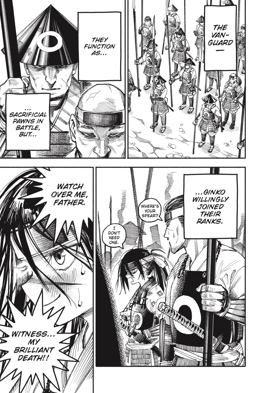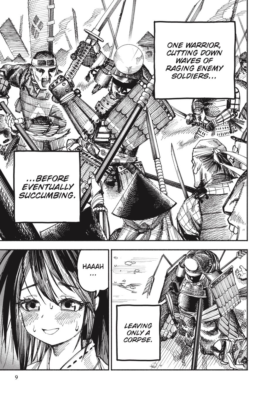 As the dangerous Warring States period draws to a close, the unparalleled warrior Ginko hungers for a glorious death at the hands of a foe who outclasses her. Above all else, she yearns to die with her samurai pride intact—so after years of fruitless wandering, Ginko desperately prays to the Buddha in a last-ditch effort to attain what she seeks. When she next opens her eyes, however, she finds herself in the midst of battle, with a dragon looming overhead…in an entirely different world! Amid a strange new land chock-full of monsters to challenge, will Ginko meet her match?