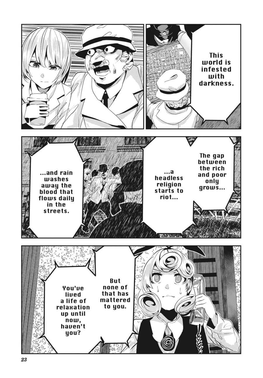The house of shadows shines light upon the truth of the world. Stephanie draws nearer to the center of the Social Service System. And Pieta follows, not far behind. Two outlooks, unalike as yin and yang, must be reconciled as our tale reaches its end… “We must take joy from those who have it!” To our Pieta, refusing that is a habit. To be happy, look! Just look all around! Beauty fills this world, with its halo crowned!