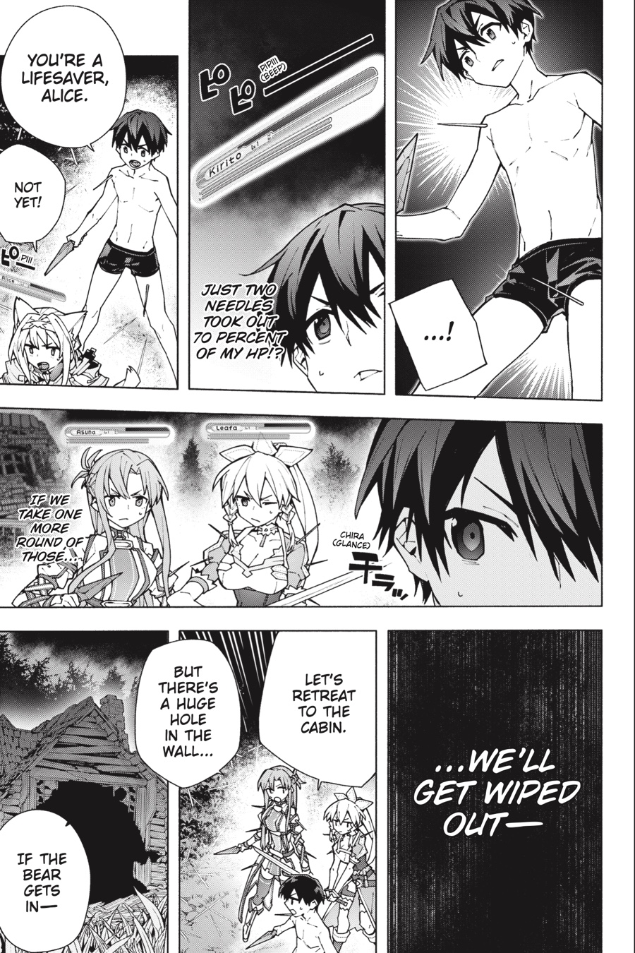 Kirito, Asuna, and their friends have been forcefully transported into a bizarre survival RPG—Unital Ring. And as their in-game grace period comes to an end, they find themselves stripped of all the gear they brought over from ALO, leaving them practically unarmed. Forced to use their wits to stay alive, they keep gathering materials to rebuild their cabin before it’s too late. But when they run into another group of players, they learn a shocking fact about Unital Ring…