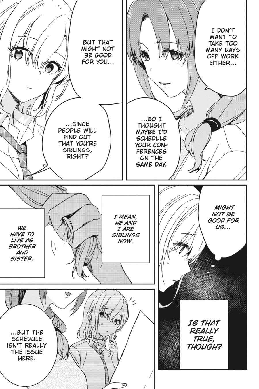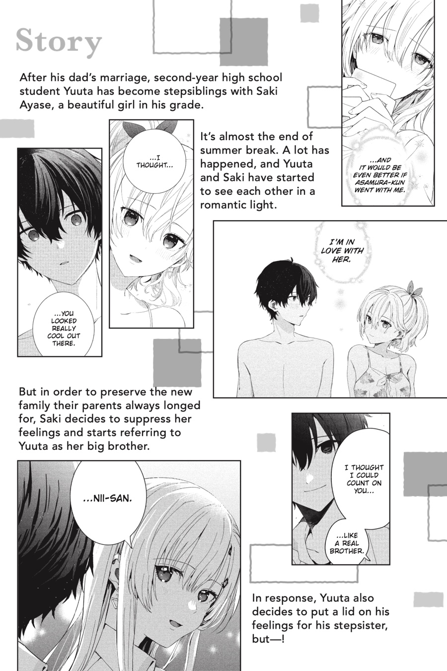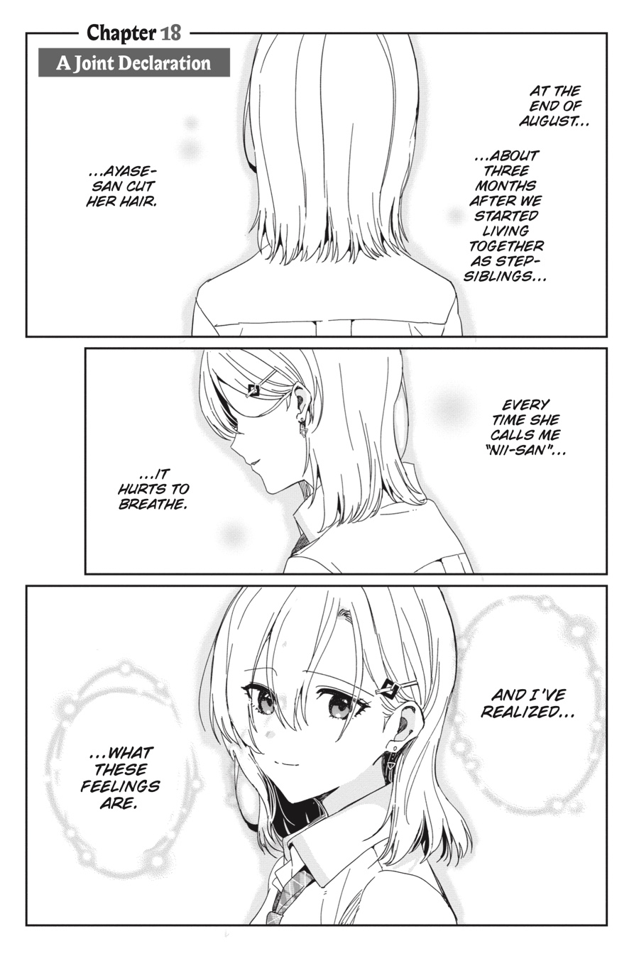 Yuuta and Saki have decided to hide their feelings for each other, choosing instead to live as brother and sister. But suppressing their emotions isn’t easy, and even as Yuuta tries to turn his attention to other women, it only makes him realize how special Saki is to him. And Saki isn’t faring much better…
