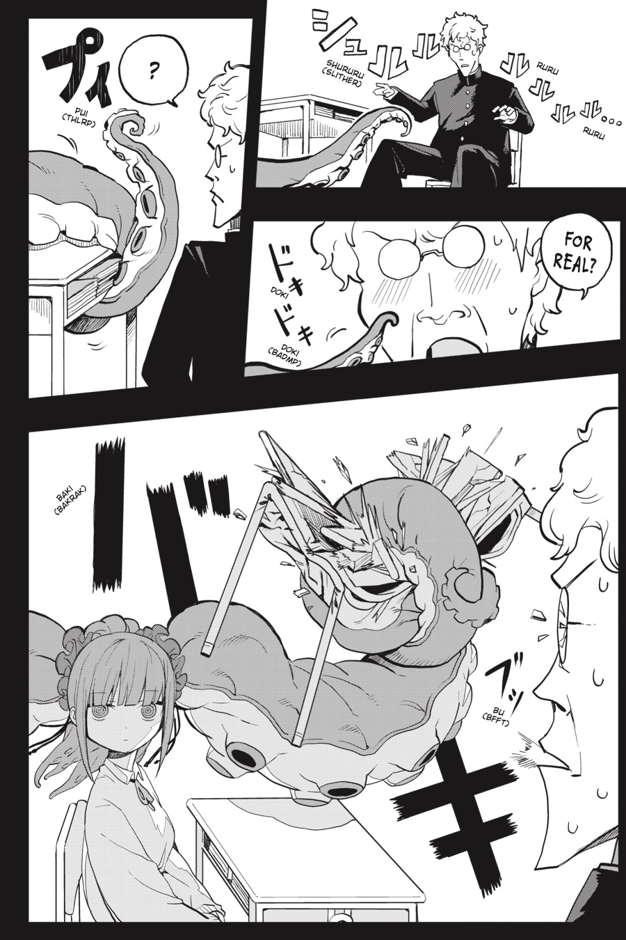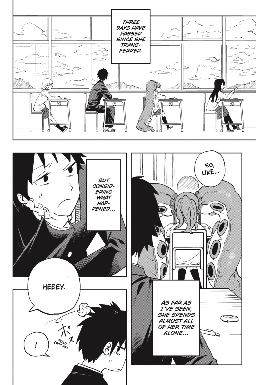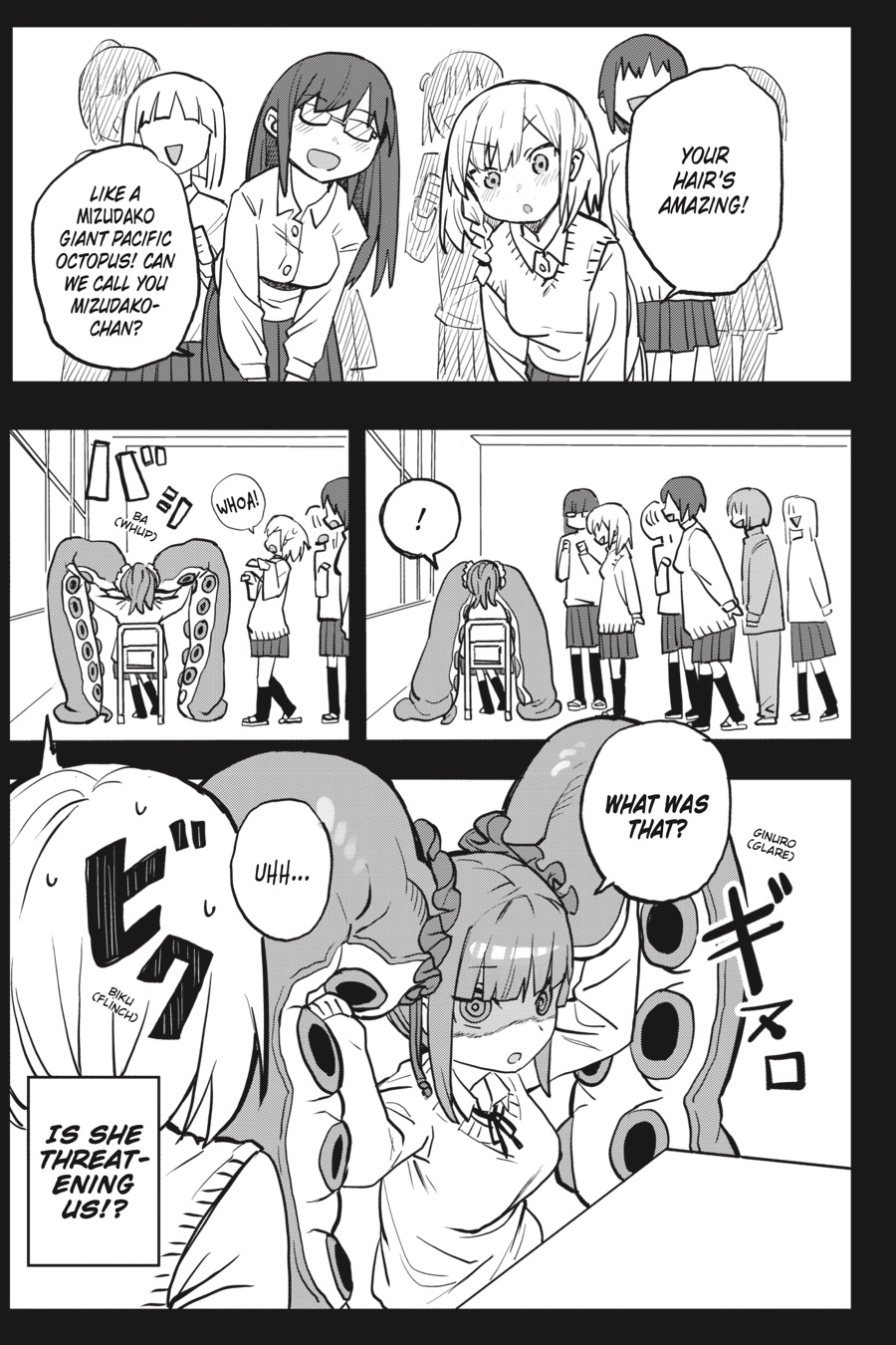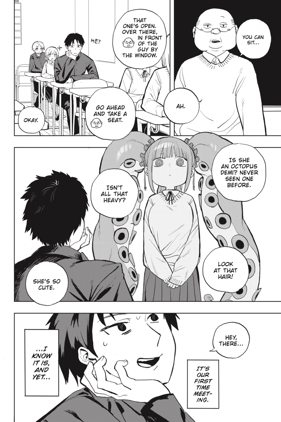 Cute, mysterious, and a little bit scary!! Kanisuke Akigai’s school life is as ordinary and settled as can be. Tests to pass, girls to feel awkward around, perverted class clowns to bicker with, and a seat by the window, perfect for daydreaming…But dreams may be more than dreams, as Kanisuke’s wandering thoughts of rare and interesting demi-humans foretell the coming of a certain eldritch transfer-student cutie, Mizudako-chan—half girl, half octopus, all clingy!