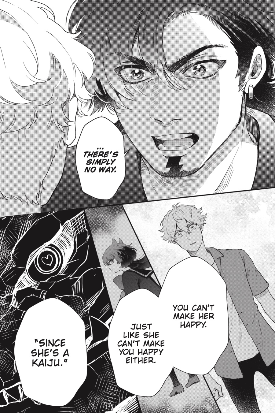 Her secret’s out, and the world knows how strange she is— but her incredibly persistent friends couldn’t care less! Showered in their affection, Kuroe realizes she is extremely lucky to have so many great people in her life…unlike her fellow kaiju, Kinara. Stuck in a monstrous form year after year and terrified of the islanders’ reactions should she appear among them, Kinara feels utterly alone, believing she has no one on her side. However, Kuroe’s new friend Drago is determined to save Kinara from her solitude and show her once and for all that it doesn’t have to be this way! And so he begs Kuroe to act as an interpreter and help him bridge the gap between him and the girl he treasures so much…
