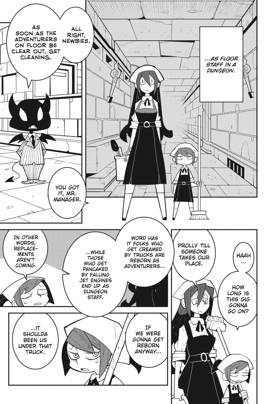 While most reincarnated earthlings get to live out awesome isekai fantasies as adventurers who plunder dungeons for fun, fame, and profit, Aine and Nacht drew the short straw and got stuck as the dungeon’s custodial staff instead. It’s a messy job—whether the heroes win or lose, there’s always a pile of corpses that needs tidying up afterward. But if the two are disposing of bodies anyway, then…what’s a few more? Might as well turn the joint into a full-blown death trap and show those friggin’ inconsiderate adventurers what for!