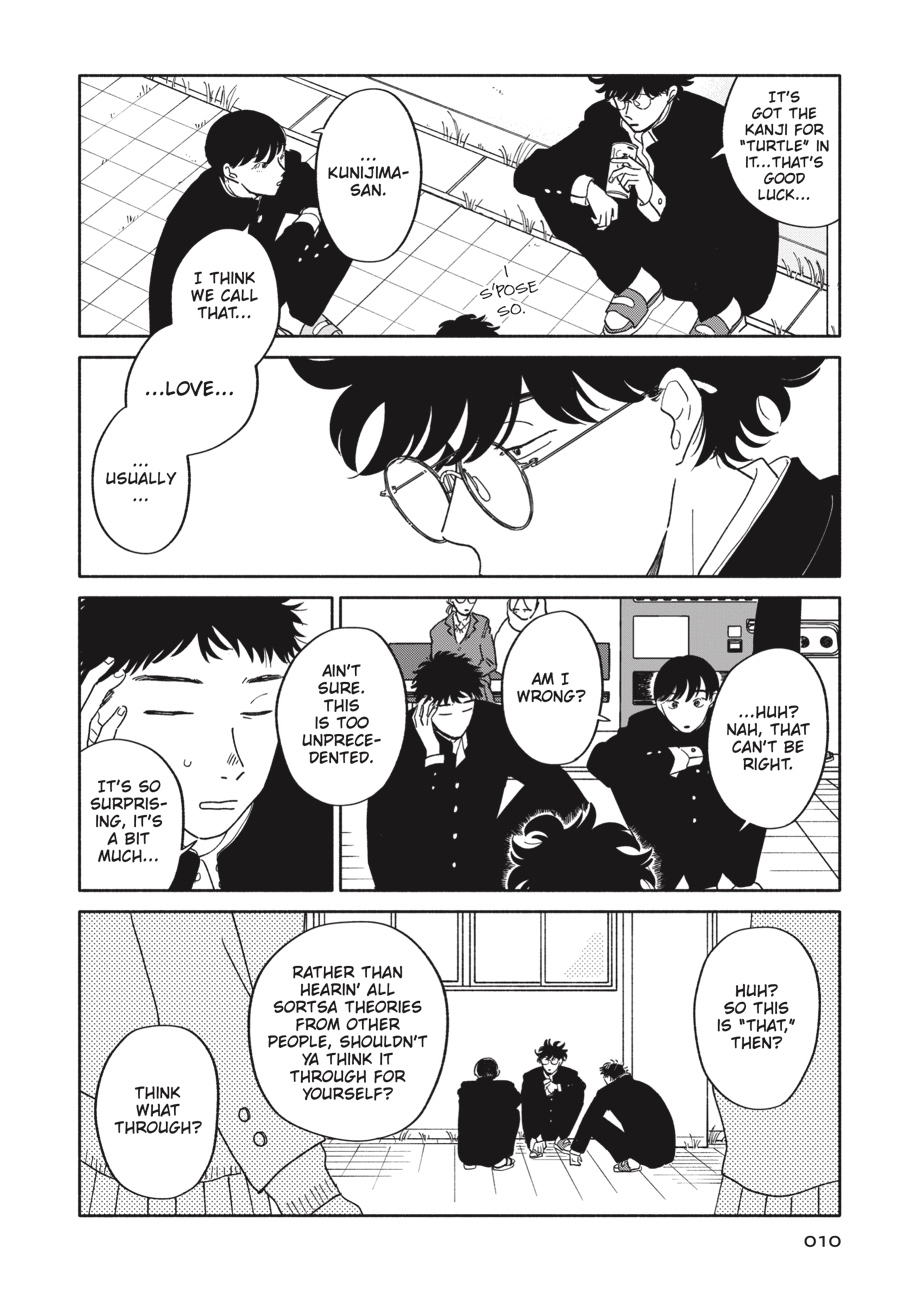 February—the month when love is in the air, sending small ripples through the lives of Atami-kun’s gang. For the first time ever, Kunijima-kun grapples with the foreign concept of romance. Atami-kun tries to track down a secret admirer. And Tsuji-kun… Well, Tsuji-kun keeps drifting along at his own pace. Flowers bloom and wither, school years end and begin, and hearts break and mend. Tumultuous love life aside, all is well for Atami-kun.