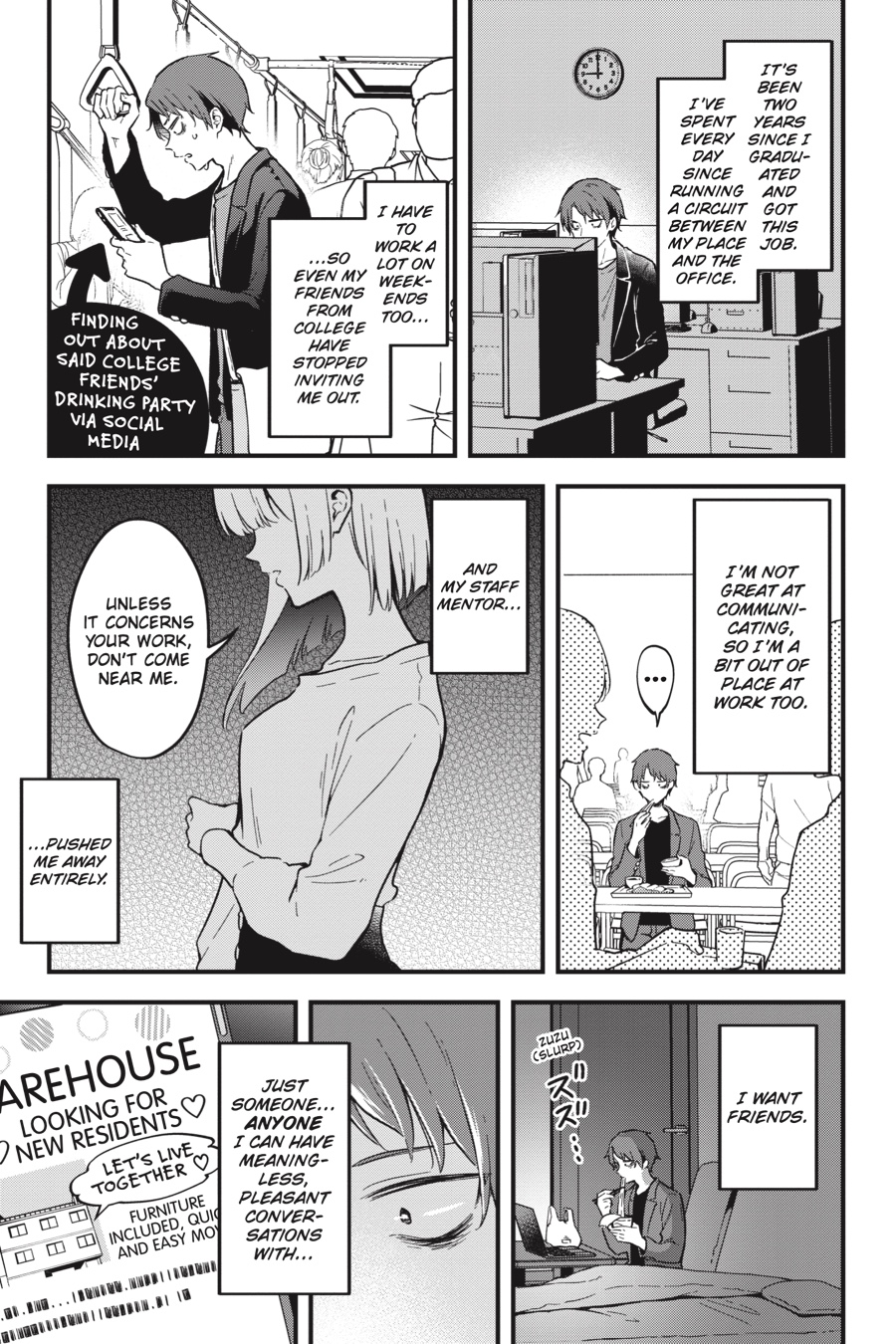 When Kei Sato, a corporate slave with low communication skills, applies to live in a share house, he thinks that it’ll be a good way for him to make friends. But the other three occupants of this house seem a little different...almost monstrous even? Can Kei overcome his introversion and become friends with these supernatural girls!?