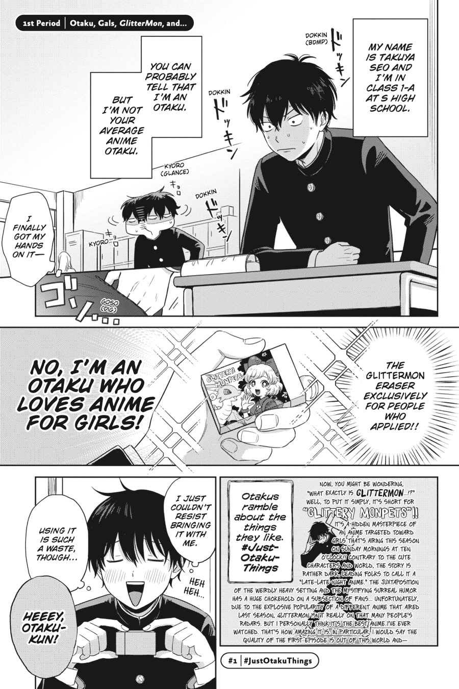 Meet Takuya Seo, an otaku who sits behind the popular gals in class, Ijichi and Amane. As people from different “castes”, you wouldn’t expect them to have much in common. But when their worlds collide over a borrowed eraser, Takuya slips up about his favorite anime, and Amane…is rather quick to correct him. She says she’s not a fan, but her familiarity with the series suggests otherwise. Could she be…a fellow geek?!