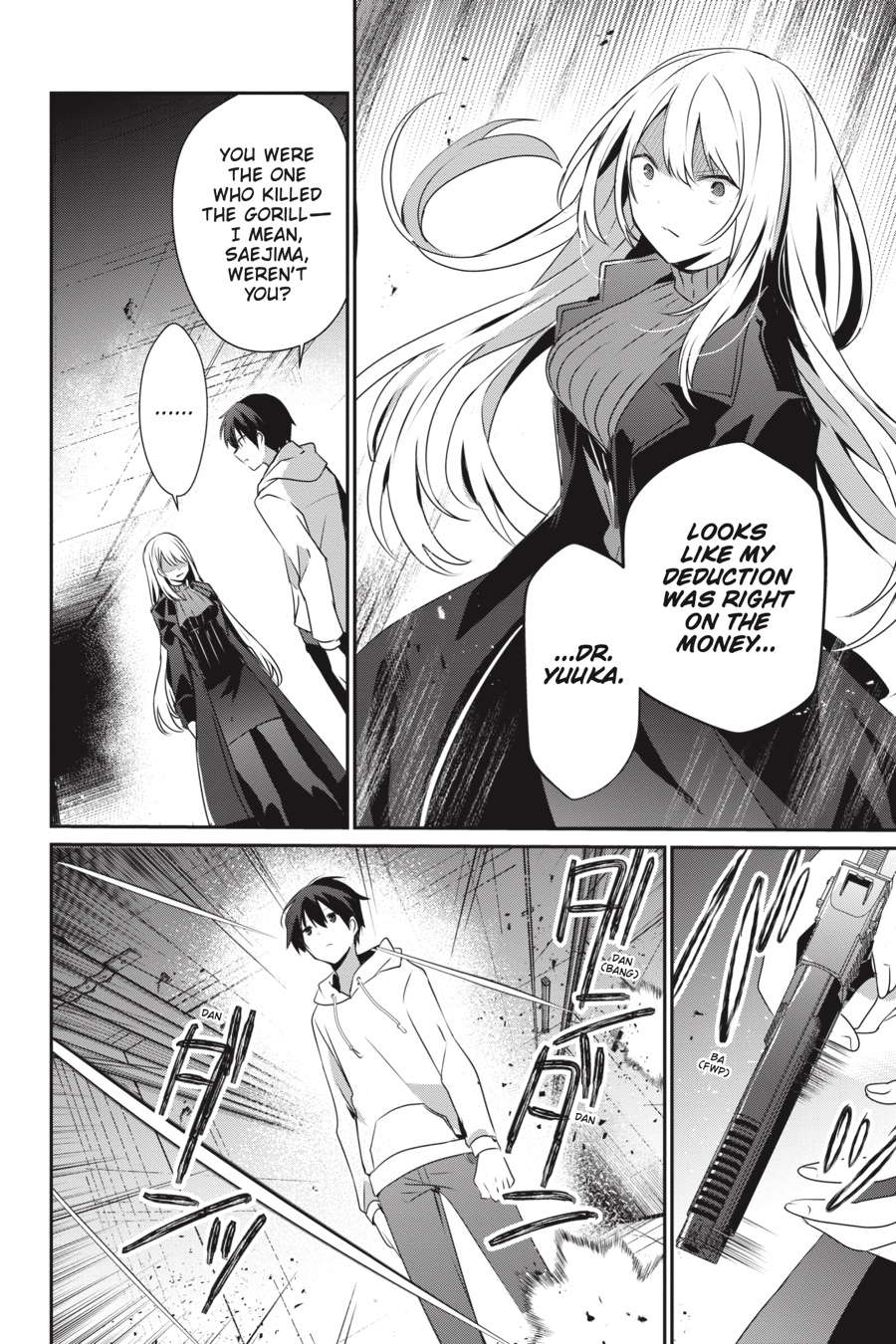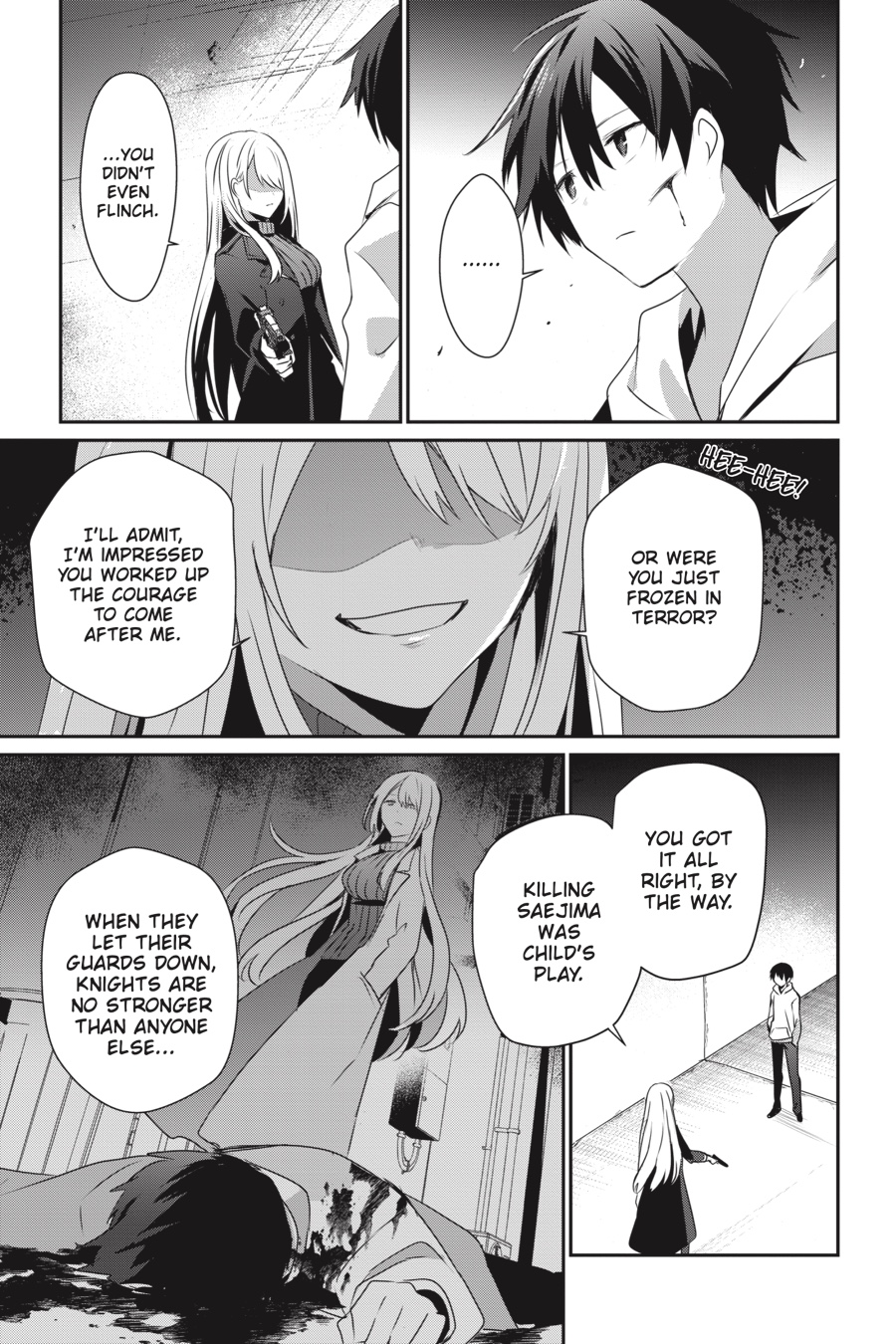 “What a fine night it is to cut the past loose.” Cid’s enjoyed his little visit to his old stomping grounds in post-apocalyptic Japan, but he beat the big monster already, and all the secret conspiracies around here seem to be falling apart, so it’s probably about time he returned to the awesome fantasy world he came from. Just one hitch, though—in the end, just what was his former classmate Akane’s deal?