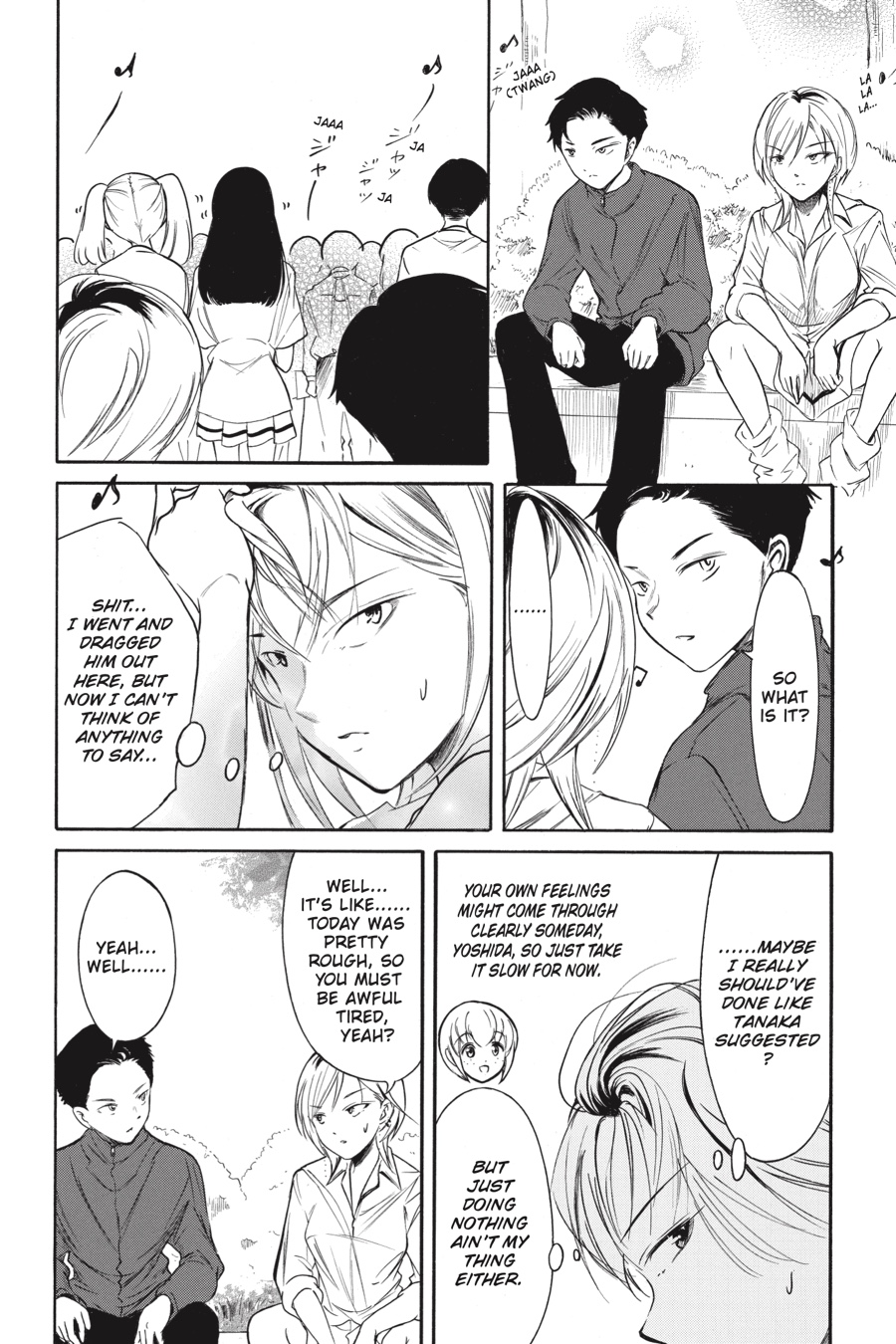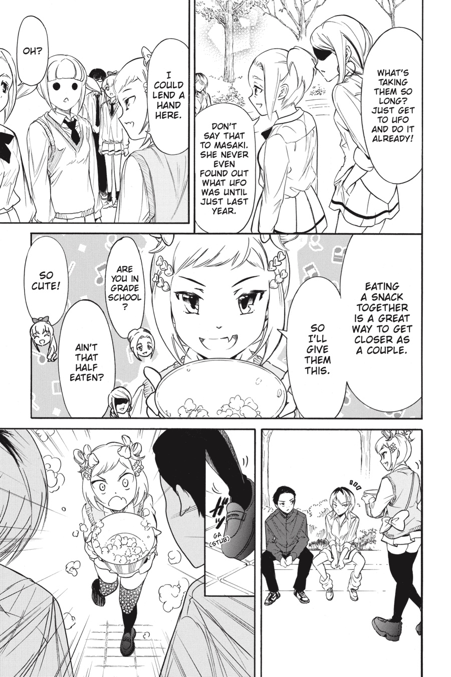 In the aftermath of the onstage kissing incident, Tomoki is the talk of the school, and all the unwanted attention has left him more than a little rattled. Yoshida takes the opportunity to invite him out to chat about it, but their meeting doesn’t go unnoticed, and a couple of the other girls aren’t very happy to see the pair together! Meanwhile, the second day of the school festival begins, and an old friend of Kuroko’s pays her a visit…