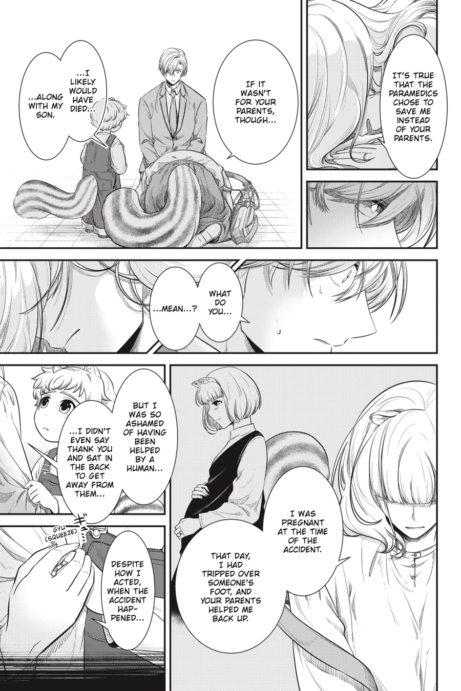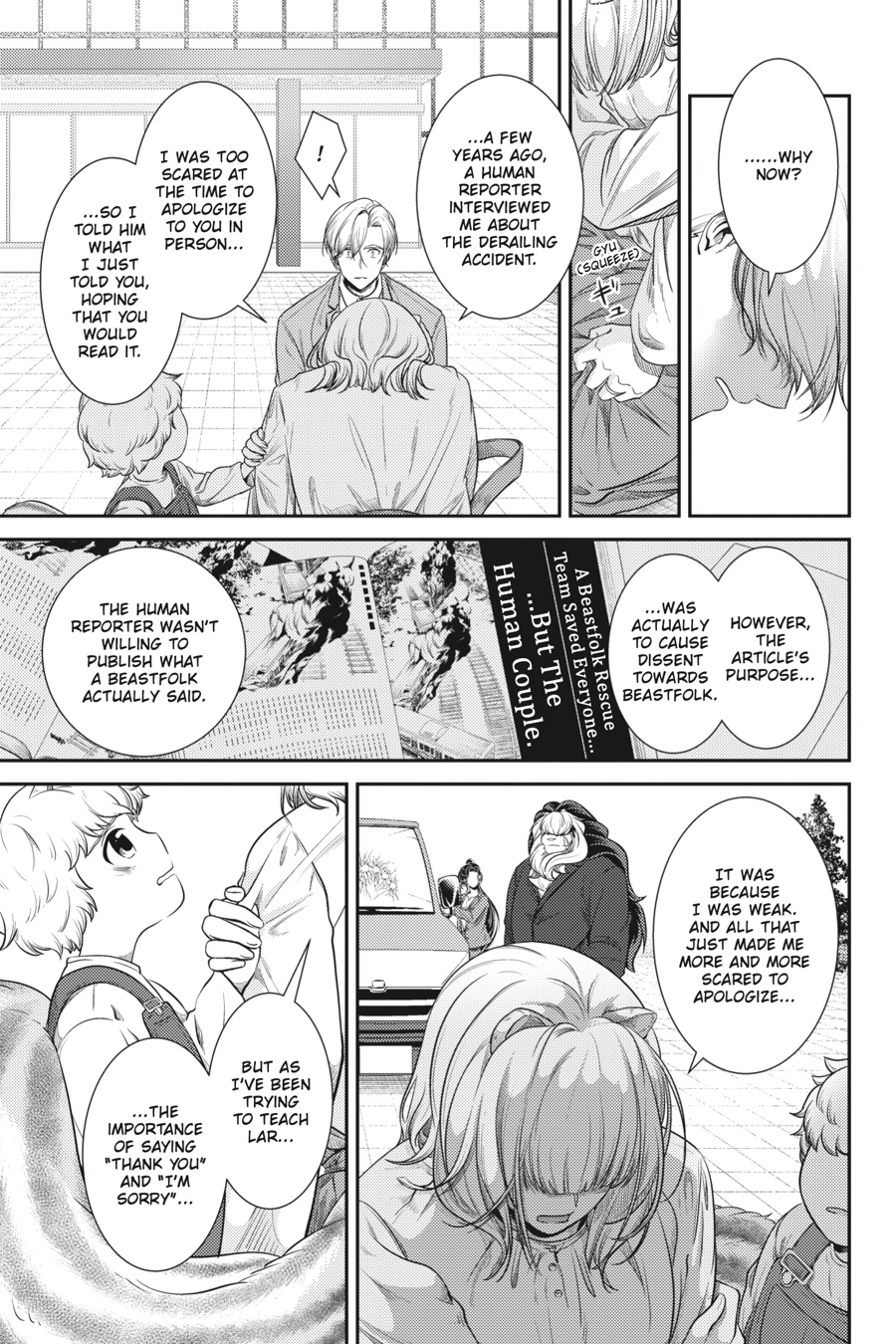Despite everything Magatsu put Atlas through, in the end, Atlas is the one who saves his life. Saki witnesses this profound act of humanity chip away at the tough exterior her ex donned all those years ago. And in turn, Atlas witnesses the distance between Saki and Magatsu shrink as the kind man she once loved returns. The door to Saki’s heart may close if Atlas doesn’t confess soon, and not even his bestial strength will be enough to reopen it. But a more pressing threat looms on the horizon, because Atlas’s father, Nemeos L. Mout—a beastfolk CEO who shares none of his son’s compassion— has decided to pay a visit…