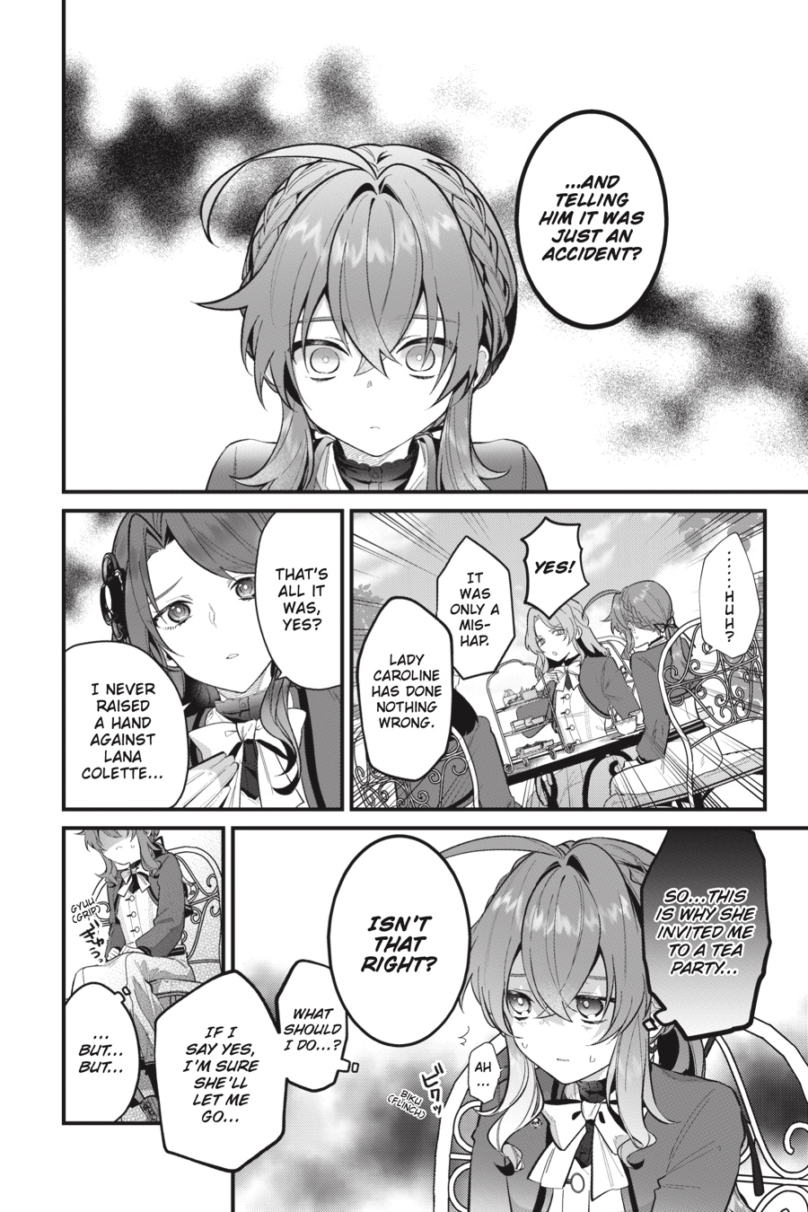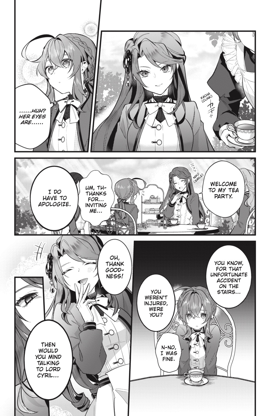 When Monica is invited by Caroline, the girl who caused her to fall down the stairs, to a tea party, she has her doubts but can’t find it in her to refuse. Sure enough, Caroline reveals her true motives at the tea party, demanding that Monica tell Cyril that the incident the other day was an accident! Monica stands firm, but when she drinks the tea Caroline offers her, she starts to feel something strange…and the person who rushes to her rescue is none other than—Claudia?!