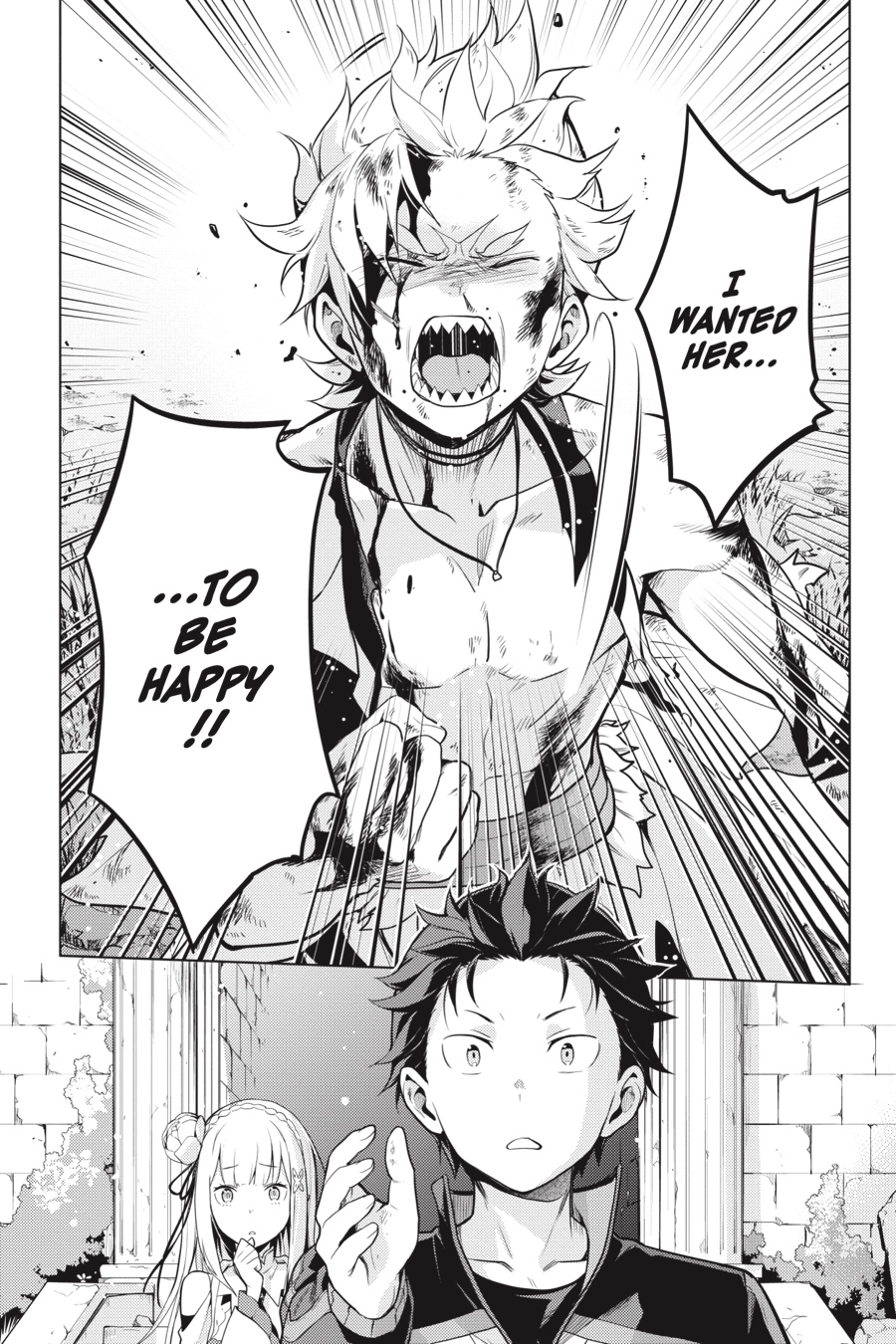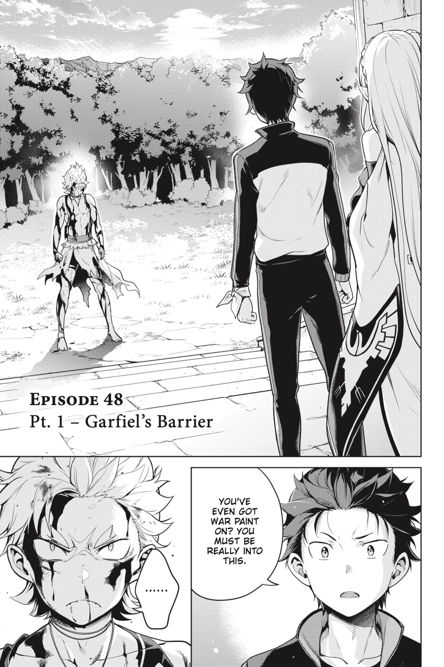 Subaru Natsuki emerges, walking once more with Emilia, but standing in their way is Garfiel: a foe whose ferocity Subaru knows all too well. The two men clash, each carrying a firm resolve as they exchange blows. And Emilia, who now remembers the past, must confront both the light and the darkness within her memories...