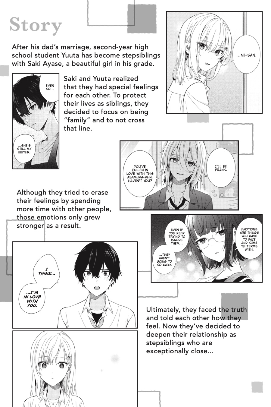 Now aware of their feelings, Yuuta and Saki are still unsure of whether the affection they feel for one another is familial or romantic. To find out, they decide to try deepening their relationship, unbeknownst to their family and friends. As they go on their first date for Halloween, will those secret, uncertain emotions develop into something more…?