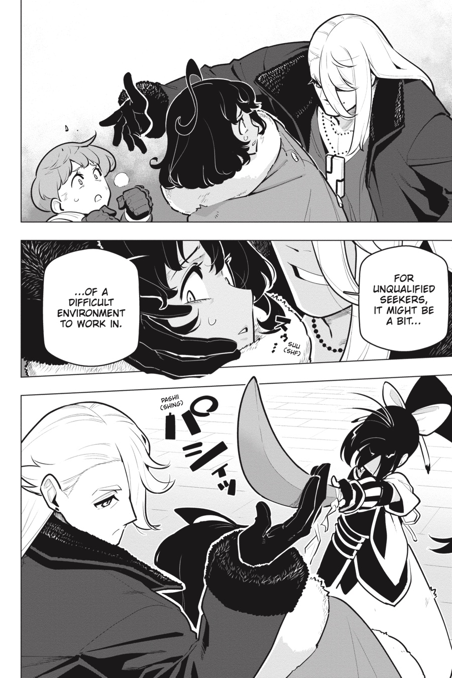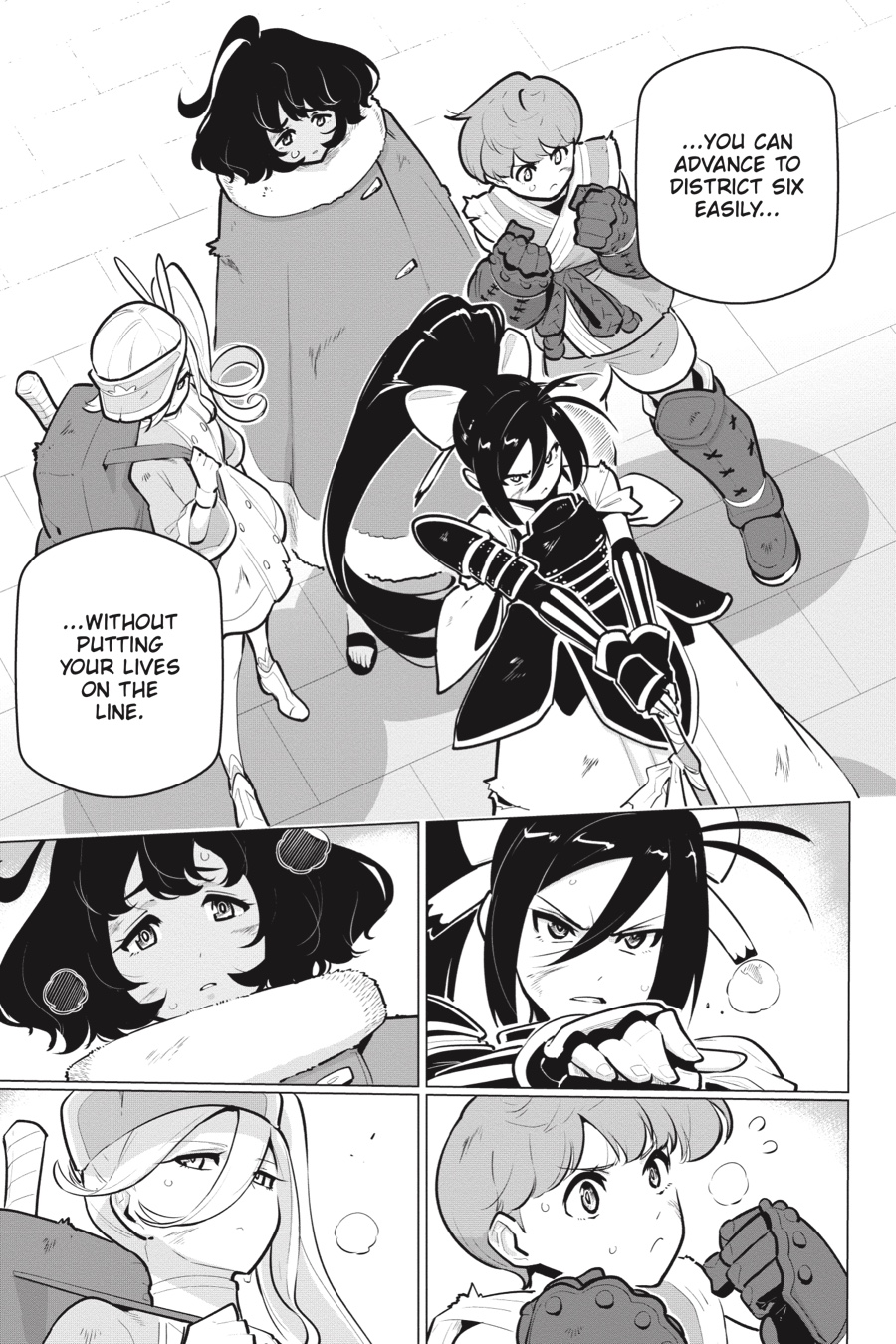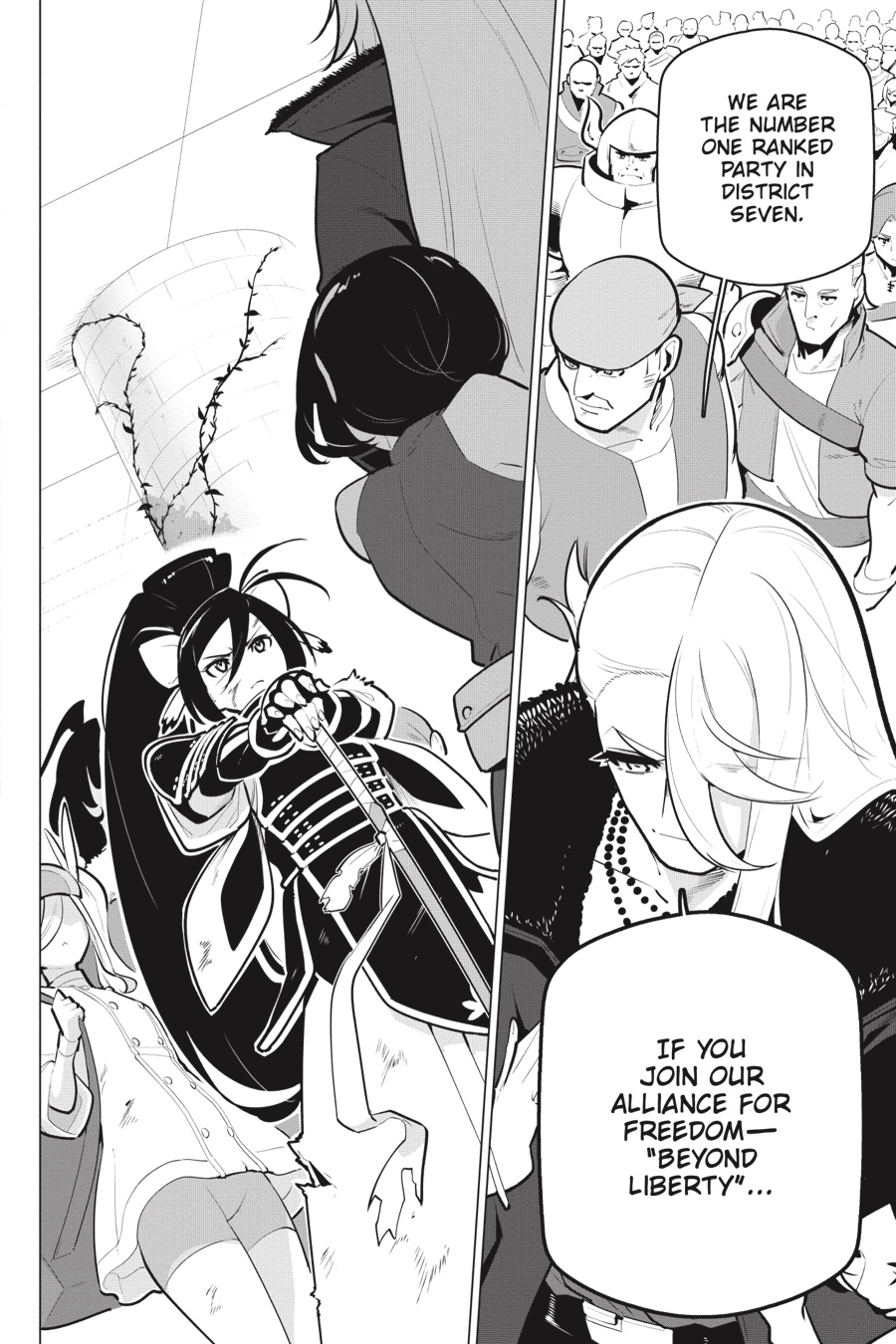 New encounters galore await in District Seven! Despite starting off as one of the higher-ranked parties in the district, Arihito and his friends soon realize the “hunting grounds” of the labyrinths are monopolized by an alliance called Beyond Liberty. In order for them to face up to these top-ranked competitors, it’s time to team up with a new party…!