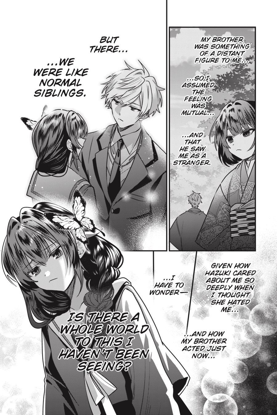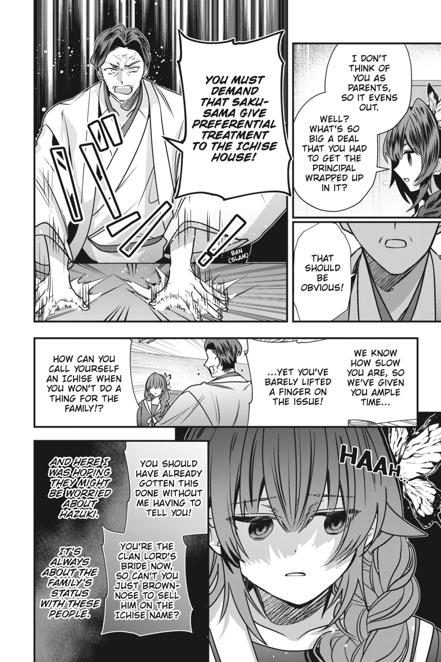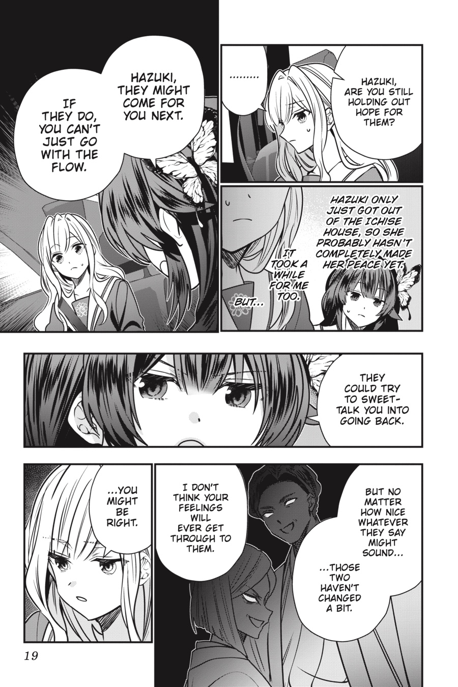 Hana is in for an unpleasant surprise when her parents show up at school to demand she help bolster the Ichises’ status with her powers! Hana won’t comply in a million years, but it does prompt the question: Why is her father so obsessed with the family’s standing in the first place? That isn’t the only threat to Hana’s peace either, as the inscrutable Yukizasa seems to be out for vengeance too—and he’ll even team up with Hana’s parents to get it! How far will a bride have to go to protect herself and her sister?